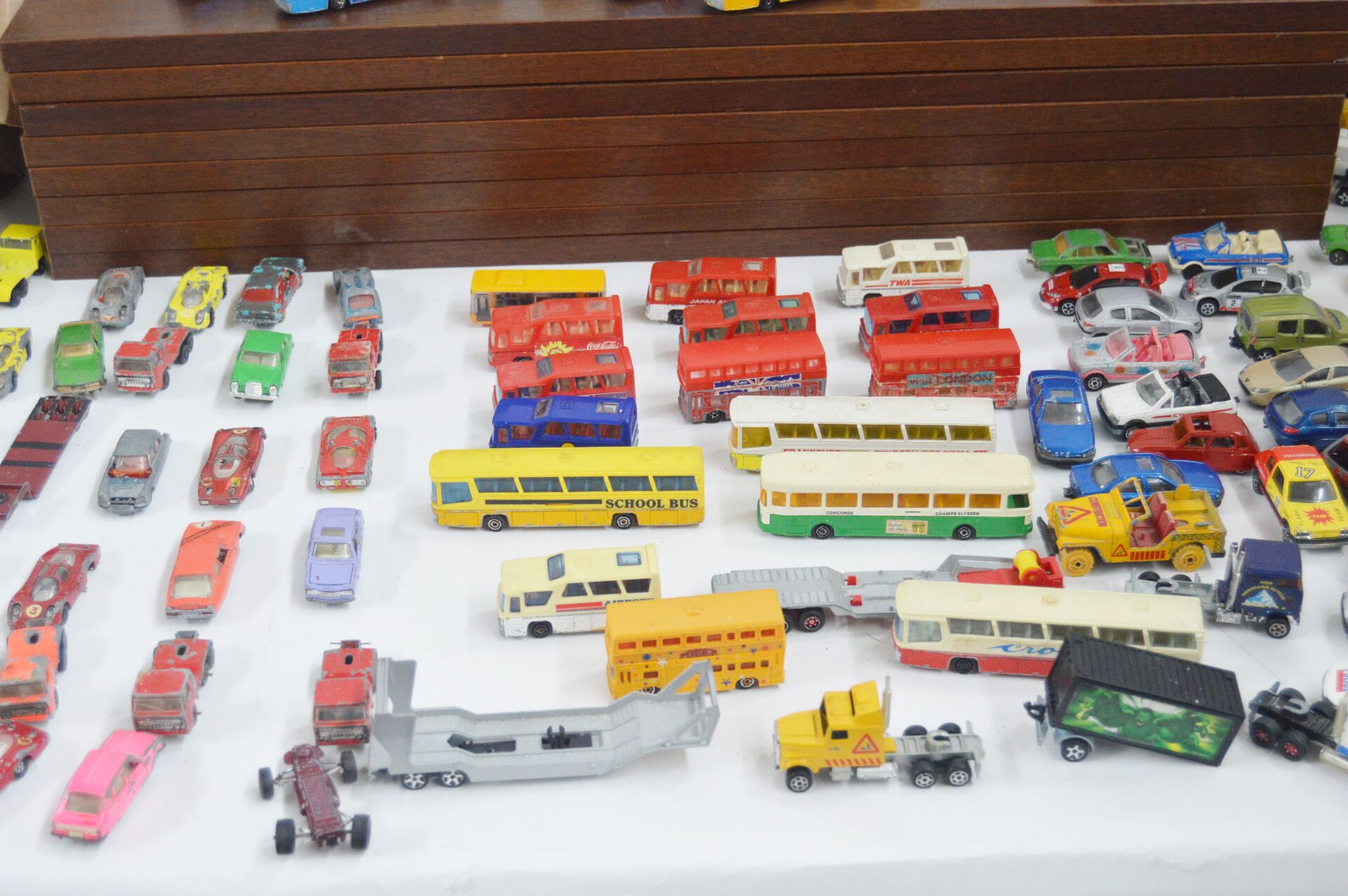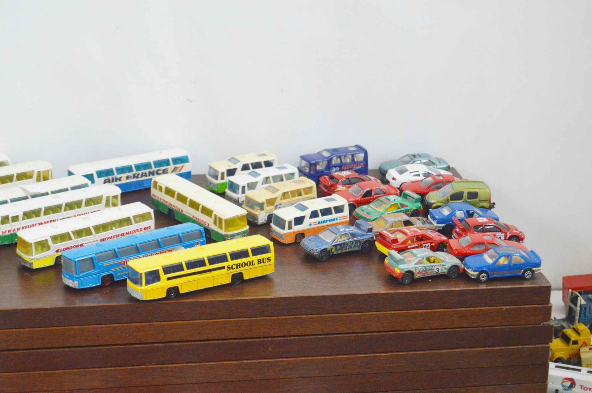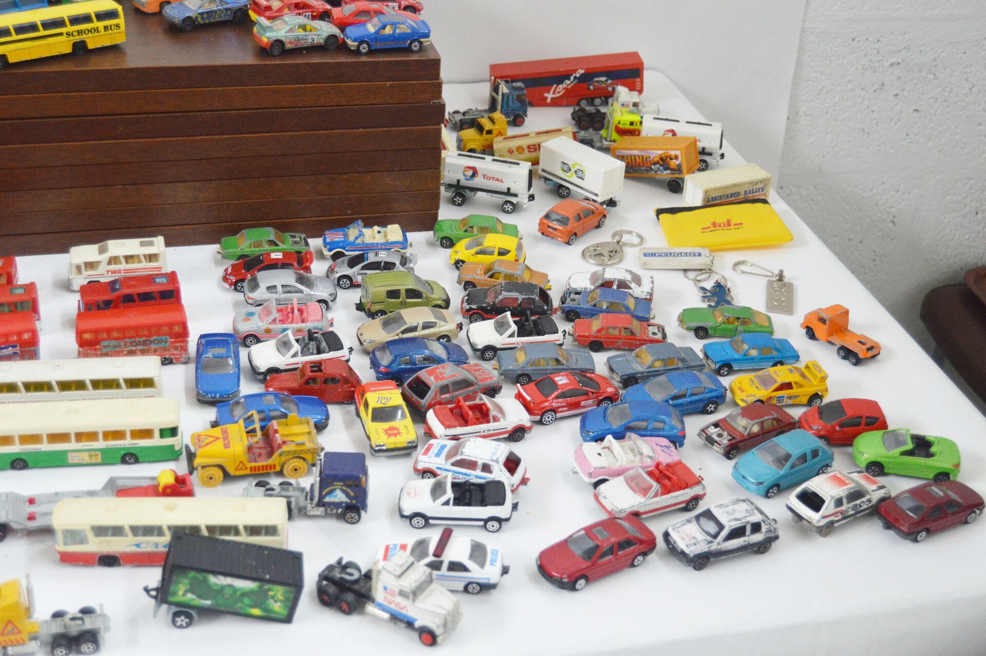 1/87ème, MAJORETTE, toutes époques dont une trentaine des années 60. Lot de + 100 véhicules tous types (tourisme, autocar, etc...). Mauvais état à épaves