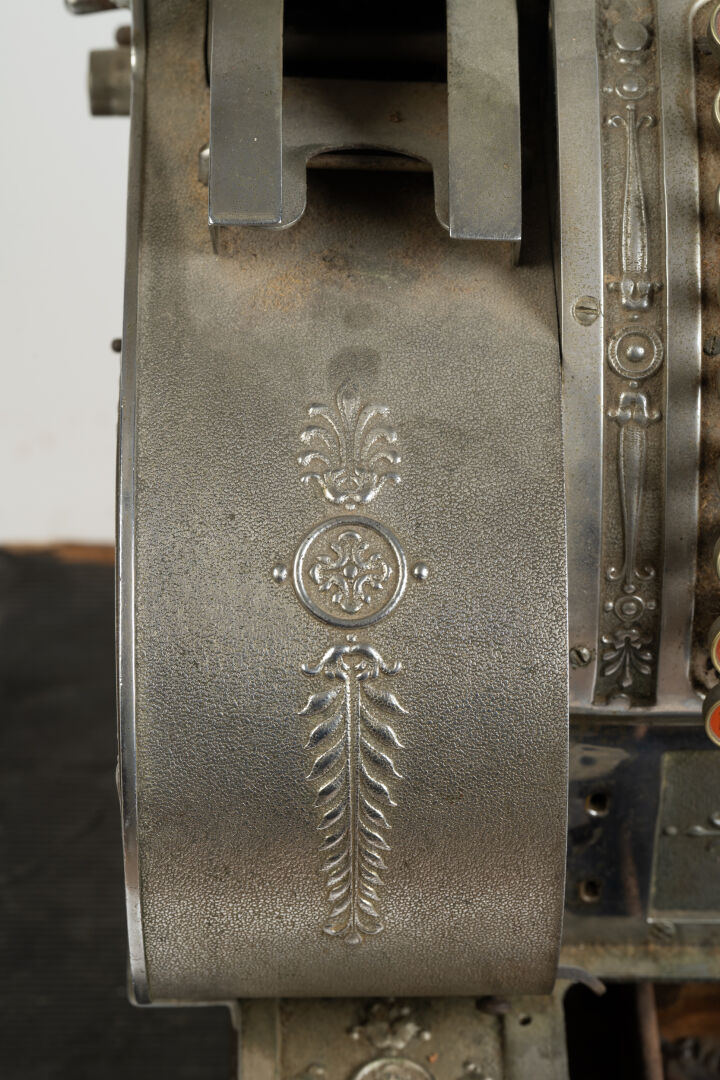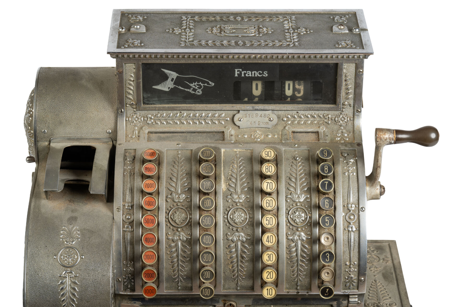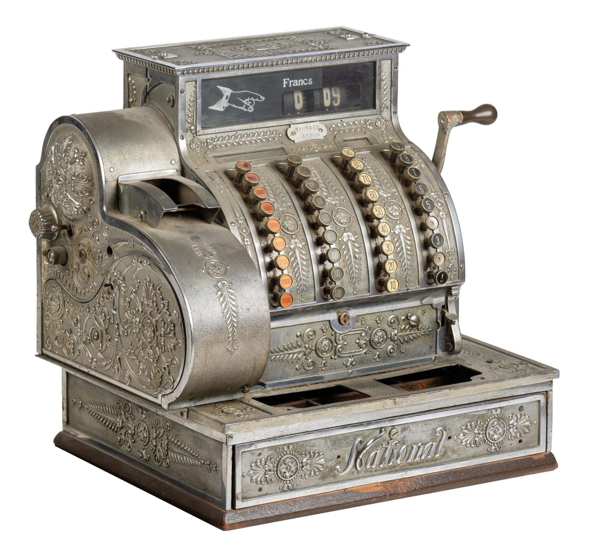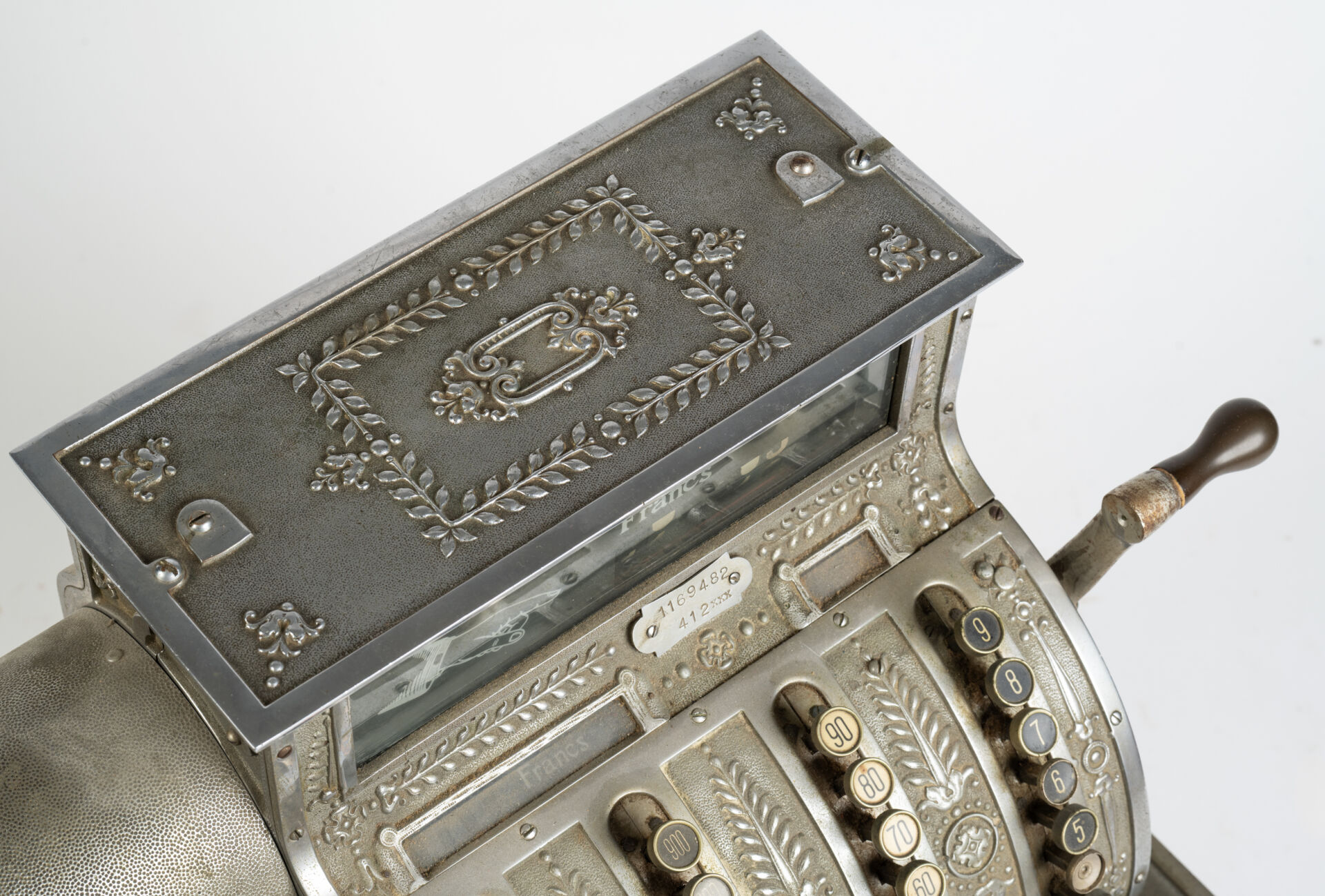 Caisse enregistreuse "National Cash Register" en métal repoussé. Vers 1920. H : 49 cm ; L : 46.5 cm ; l : 39 cm