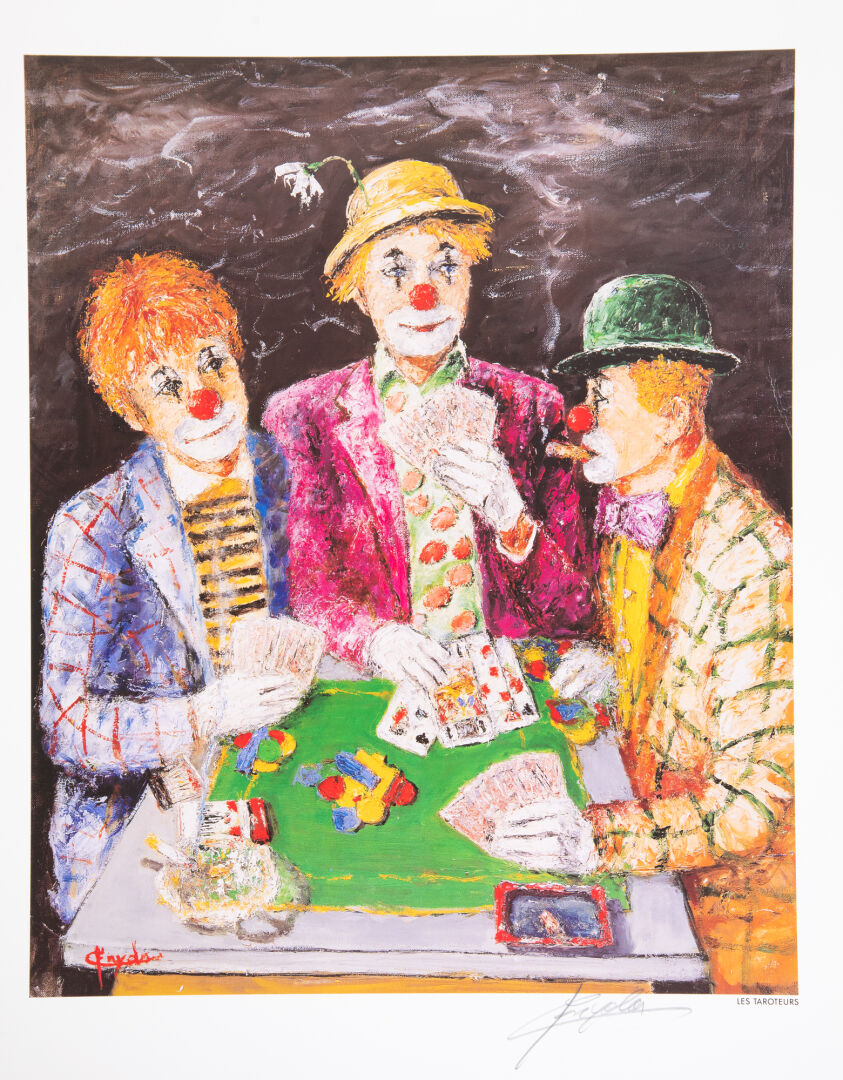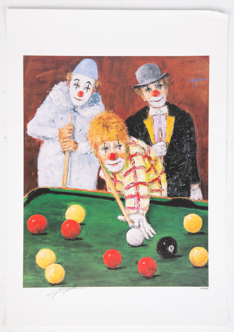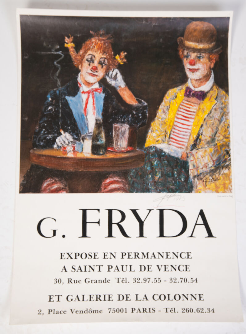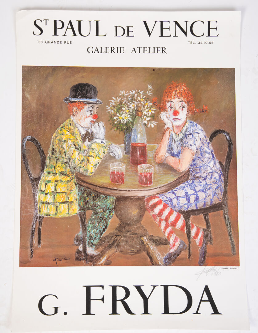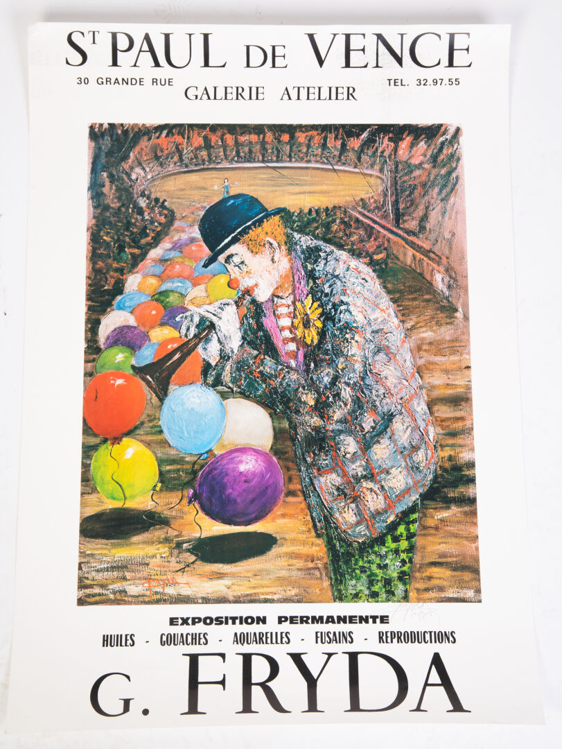 Lot d'affiches imprimées : Vogue, Winckler, Toffoli, G. Fryda, Anaïs Anaïs par Sarah Moon... Le mucisien: Sarah Moon, Anais Anais : 34 cm x 46,5 cm Winckler : 52,5 cm x 36cm Clown "Les taroteurs" : 70 cm x 50 cm Clown "8 pool" et FRYDA : 65 cm x 45,5 cm Affiche VOGUE : 62 cm x 47 cm Le musicien : 66 cm x 48 cm