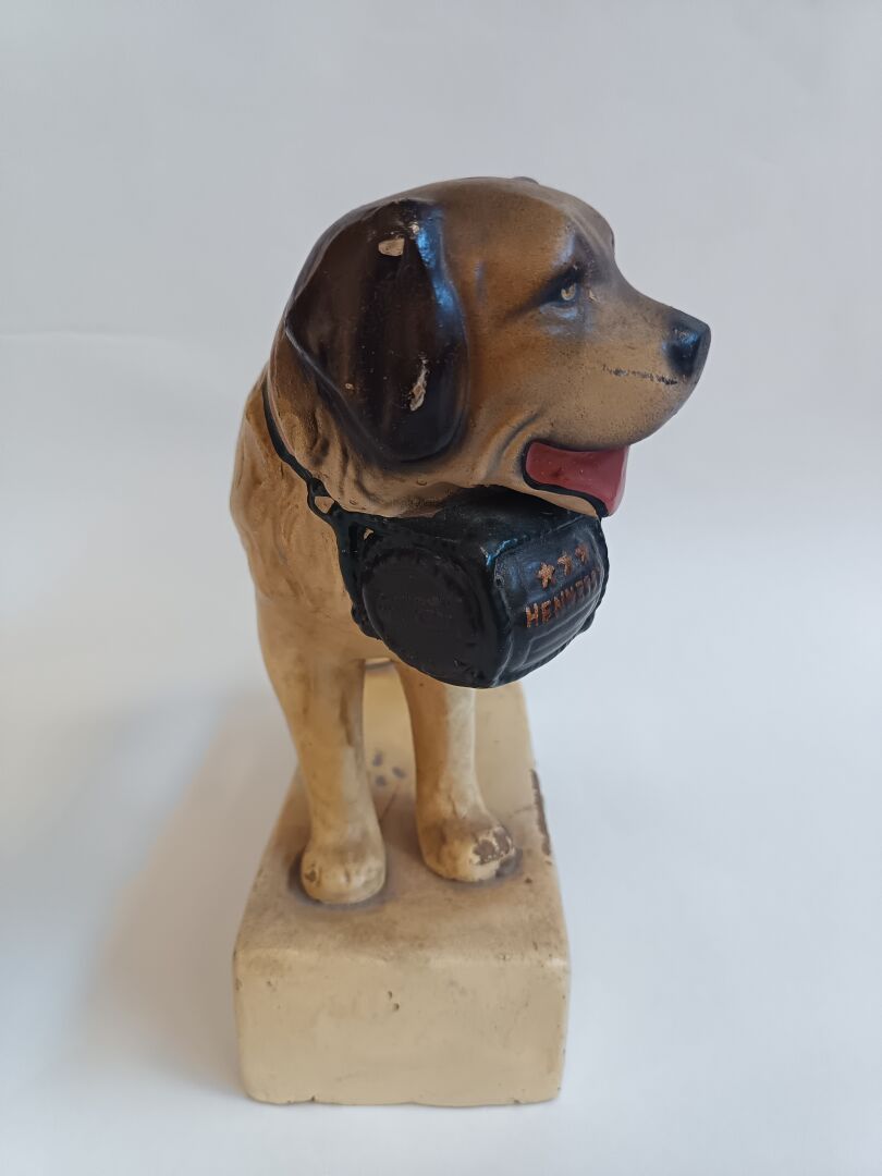 Cognac Hennessy. "Le saint Bernard". Plâtre peint. H : 25,5 cm ; L : 28 cm ; l : 10 cm