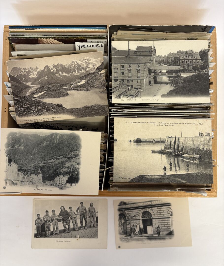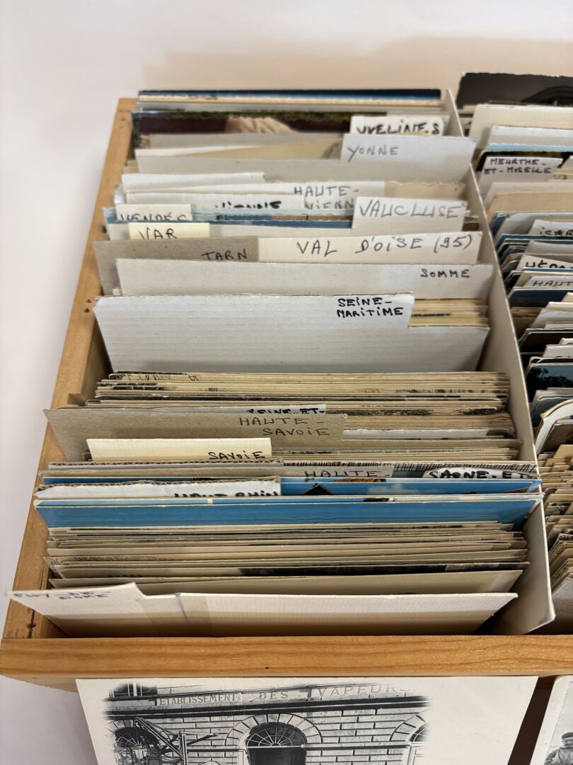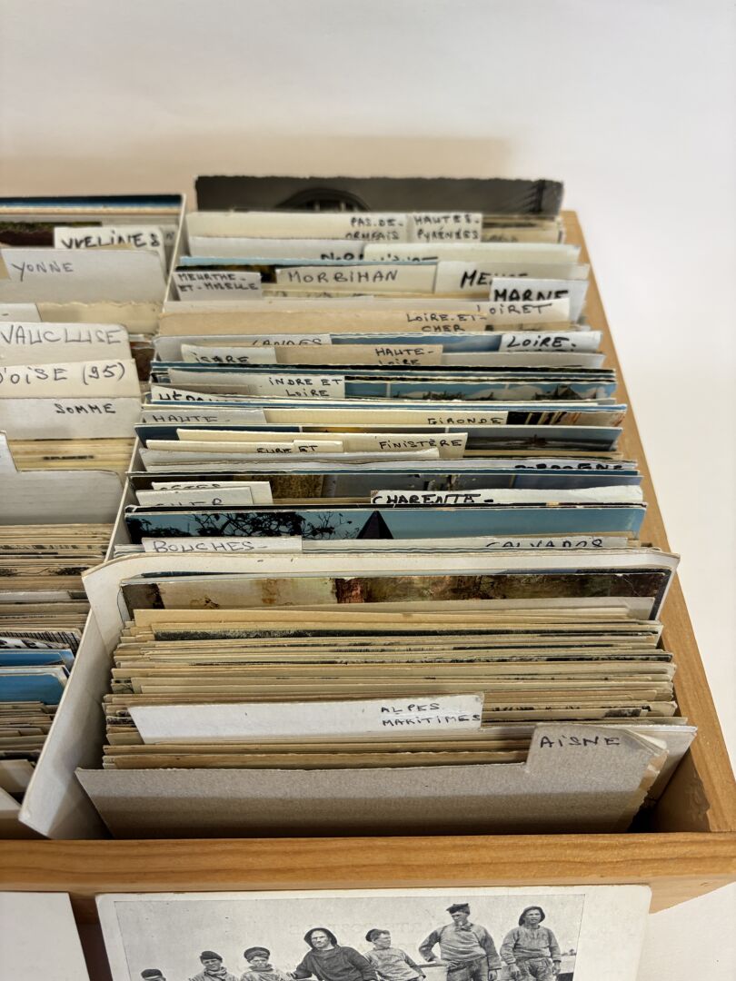 Une boite de plus de 750 cartes postales majoritairement anciennes et quelques modernes, triées par département- lot à découvrir