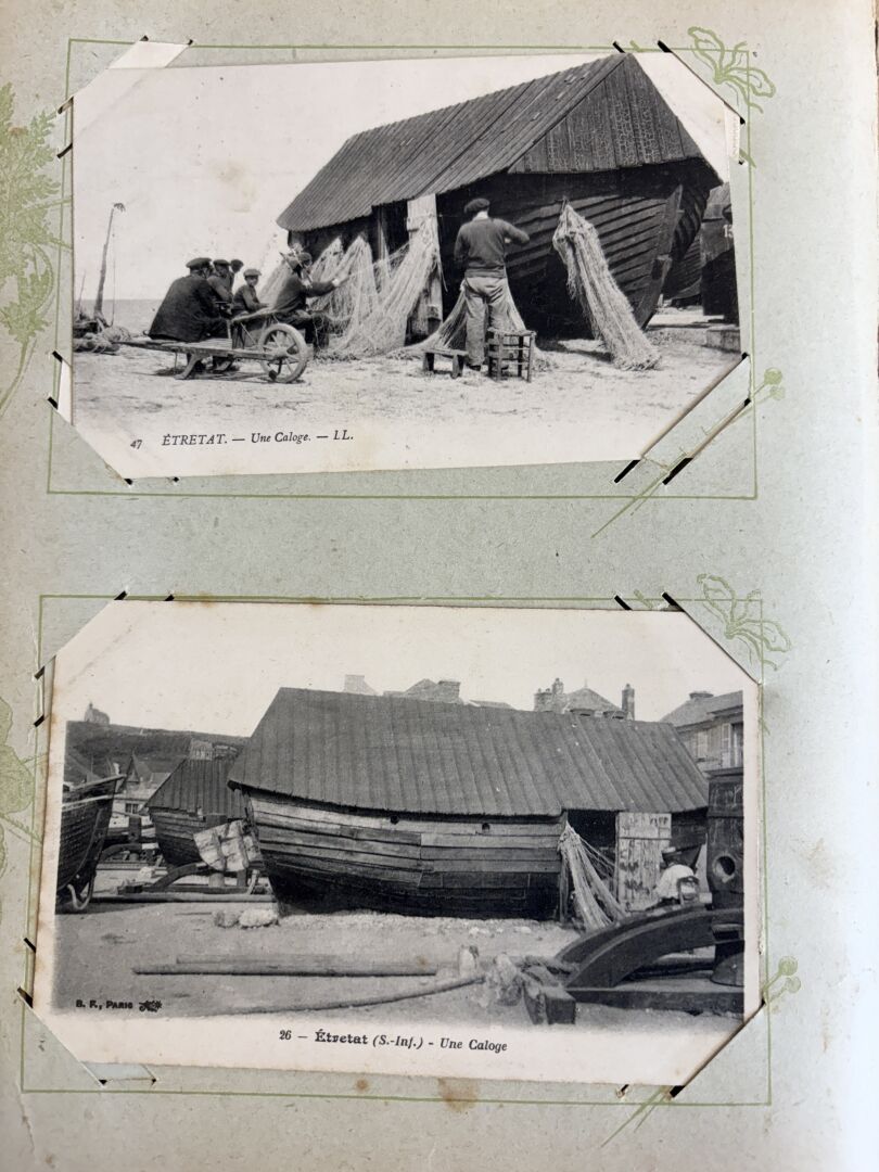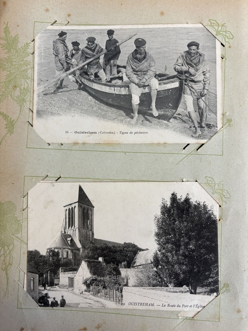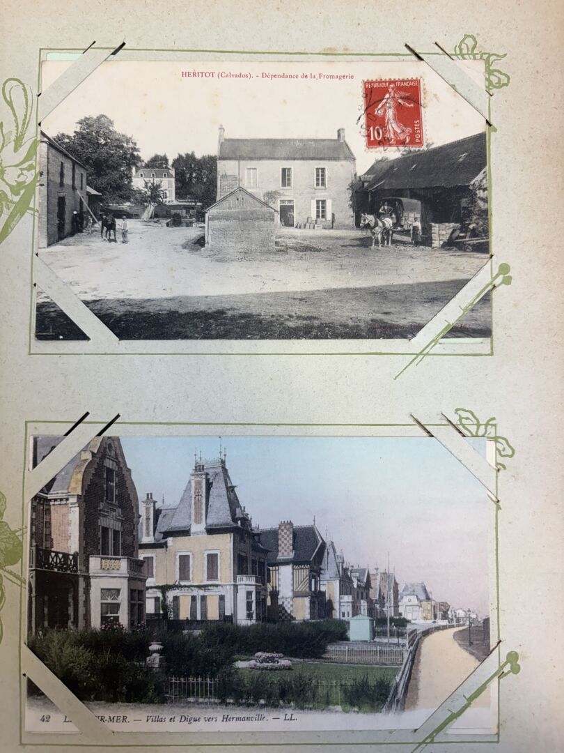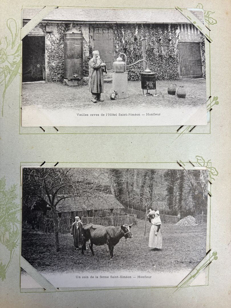 Album de cartes postales anciennes avec plus de 330 cartes dont beaucoup de Normandie (Alambic à Honfleur ...)
