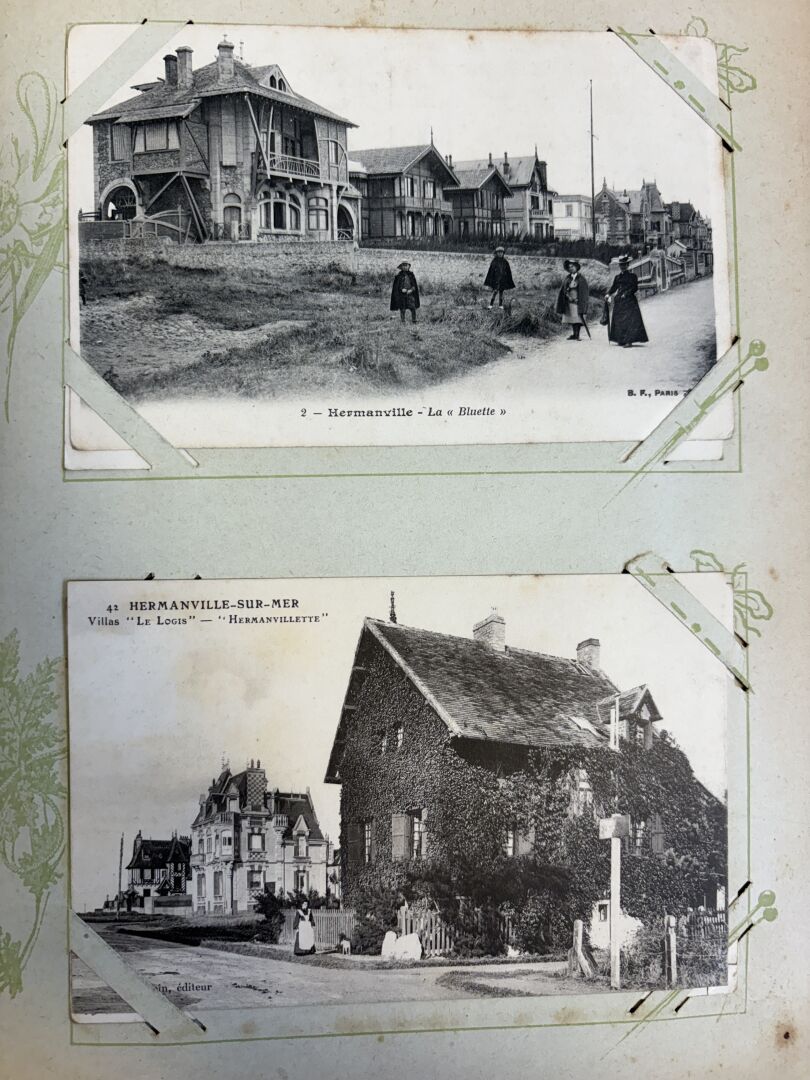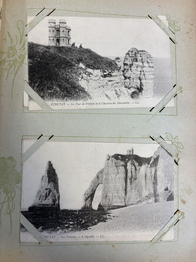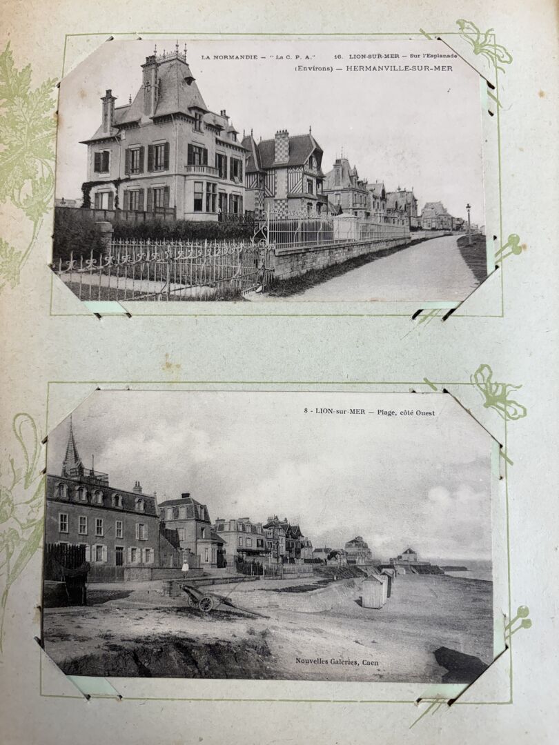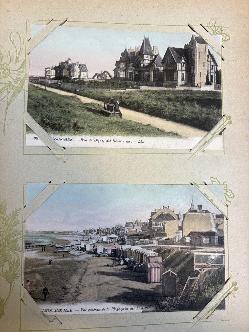 Album de cartes postales anciennes avec plus de 330 cartes dont beaucoup de Normandie (Alambic à Honfleur ...)