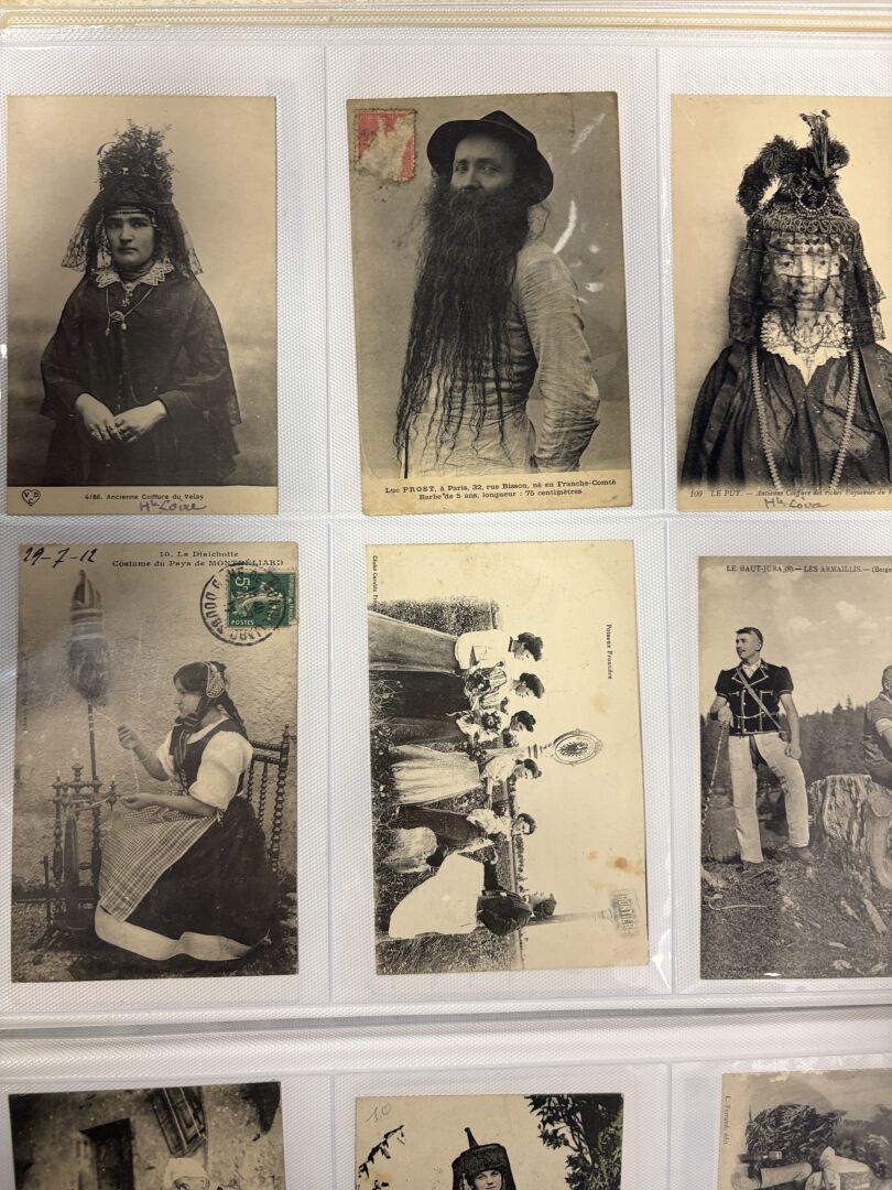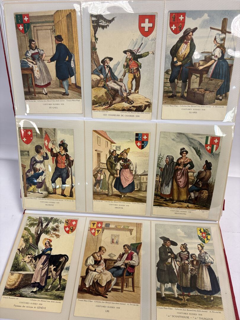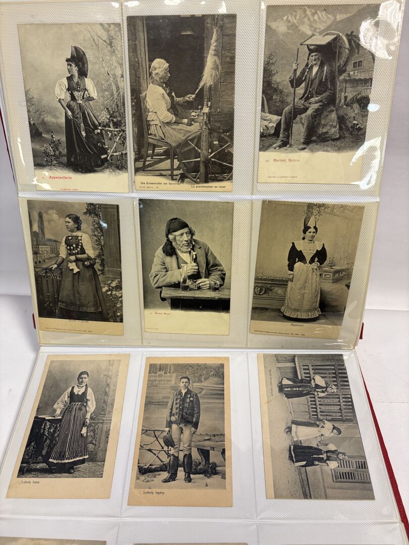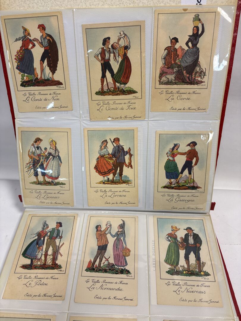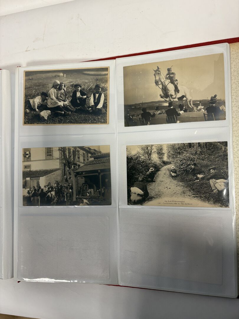 Album rouge de plus de 150 cartes postales anciennes sur le folklore de toute la France, marchés ...
