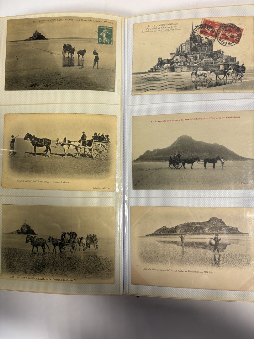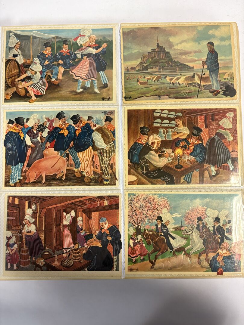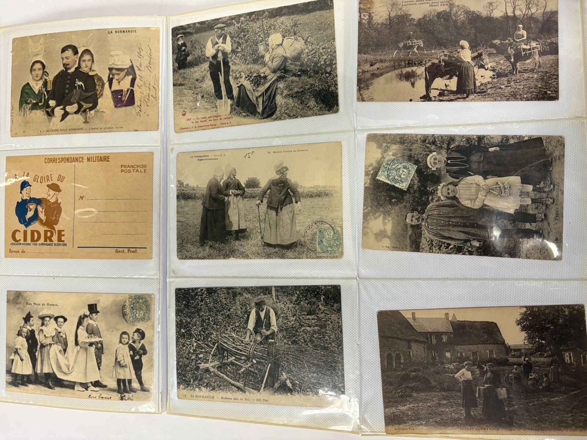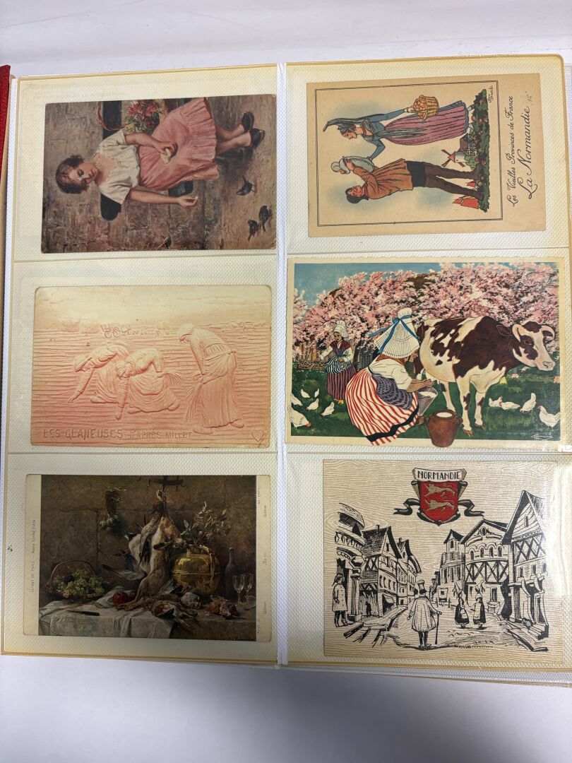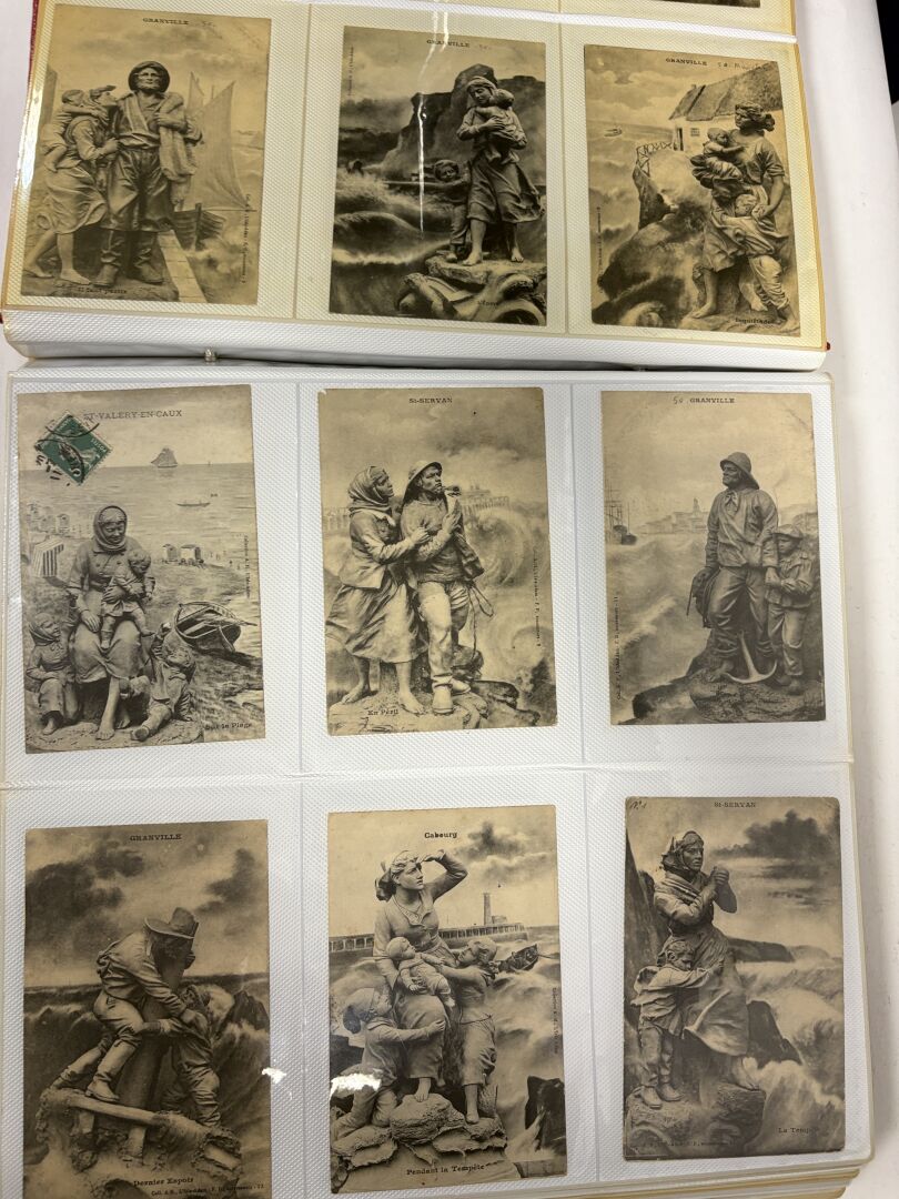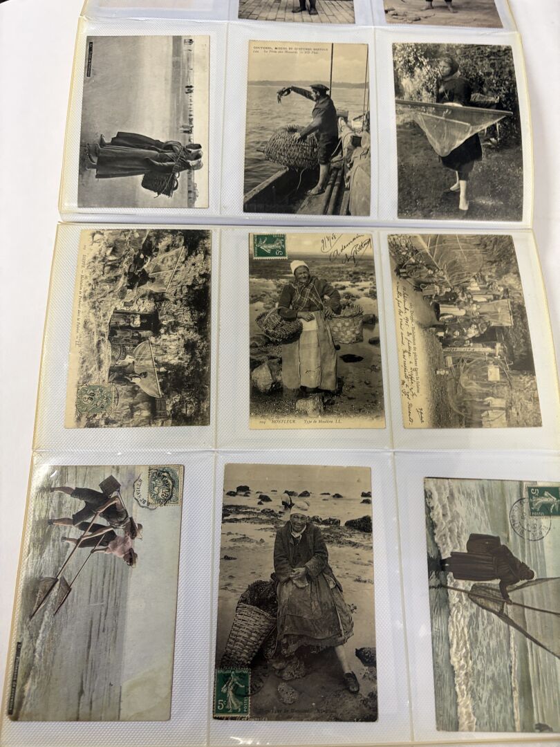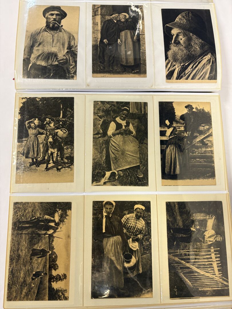 Album rouge de plus de 450 cartes postales anciennes sur la Normandie, les coiffes, les dentelles, les métiers ...