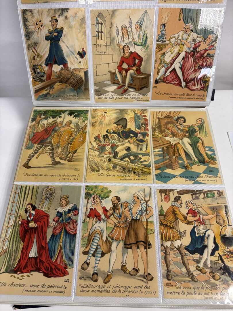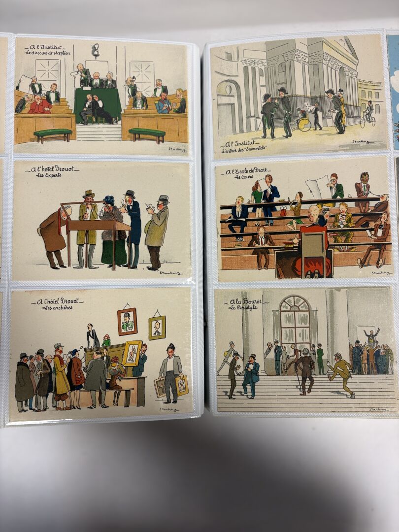 Superbe album bleu de plus de 800 cartes postales modernes d'illustrateurs dont Jean PARIS, BONNEFOY, DYL ...