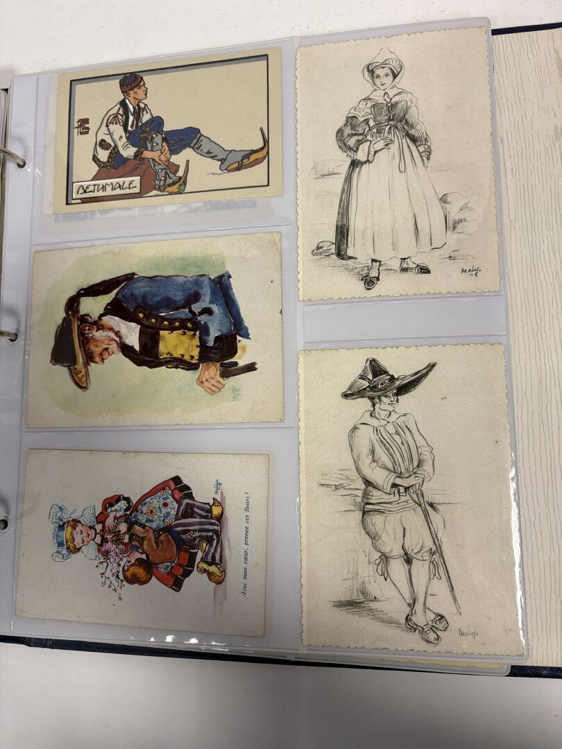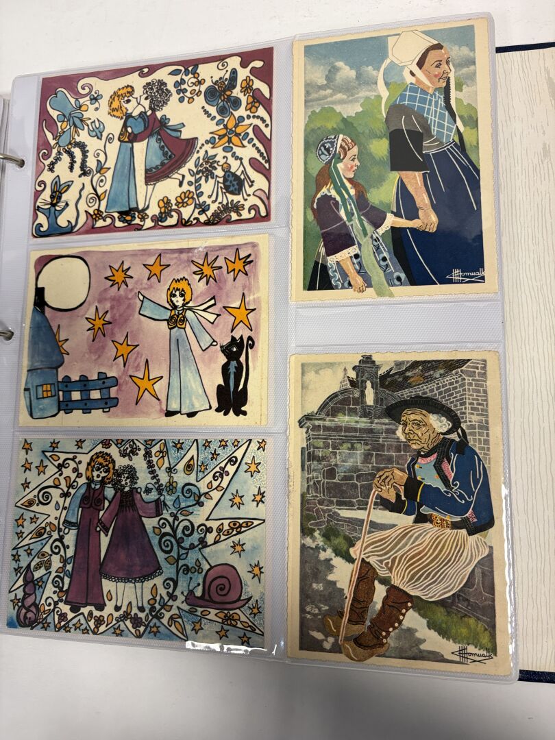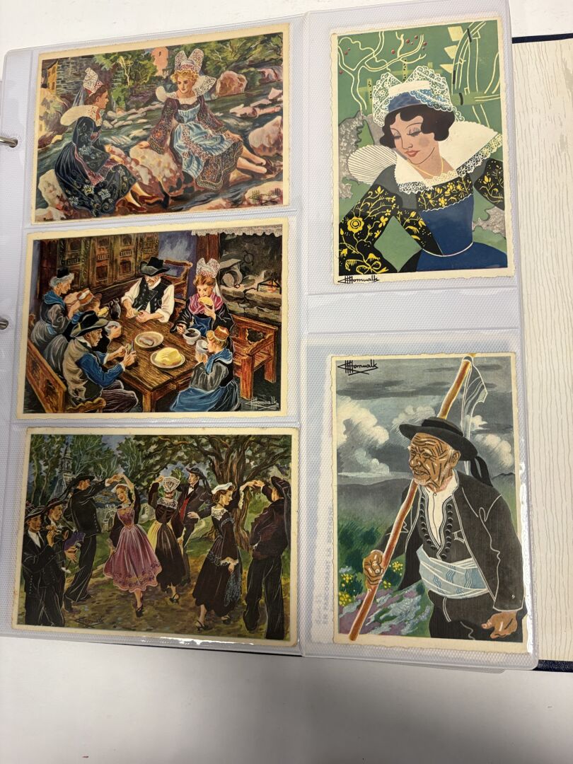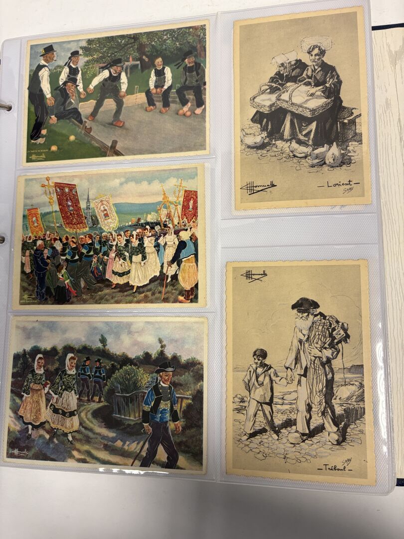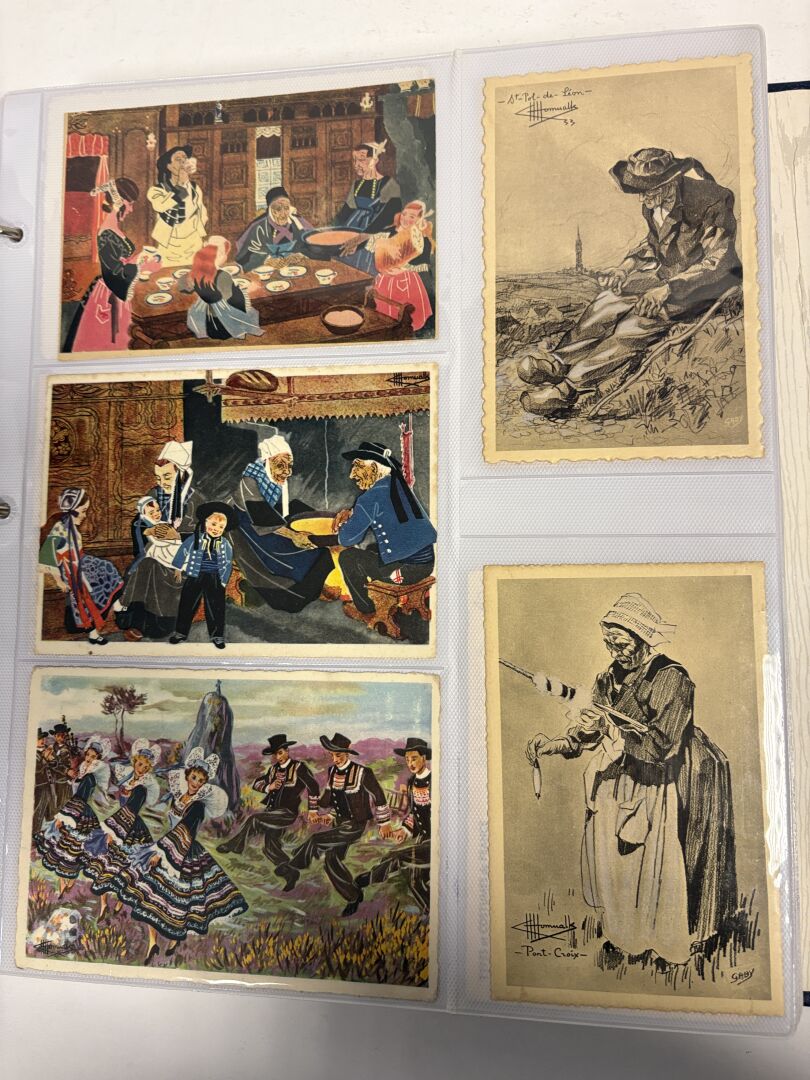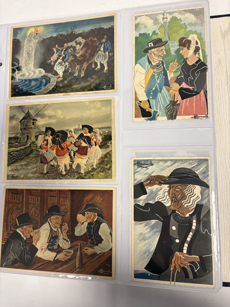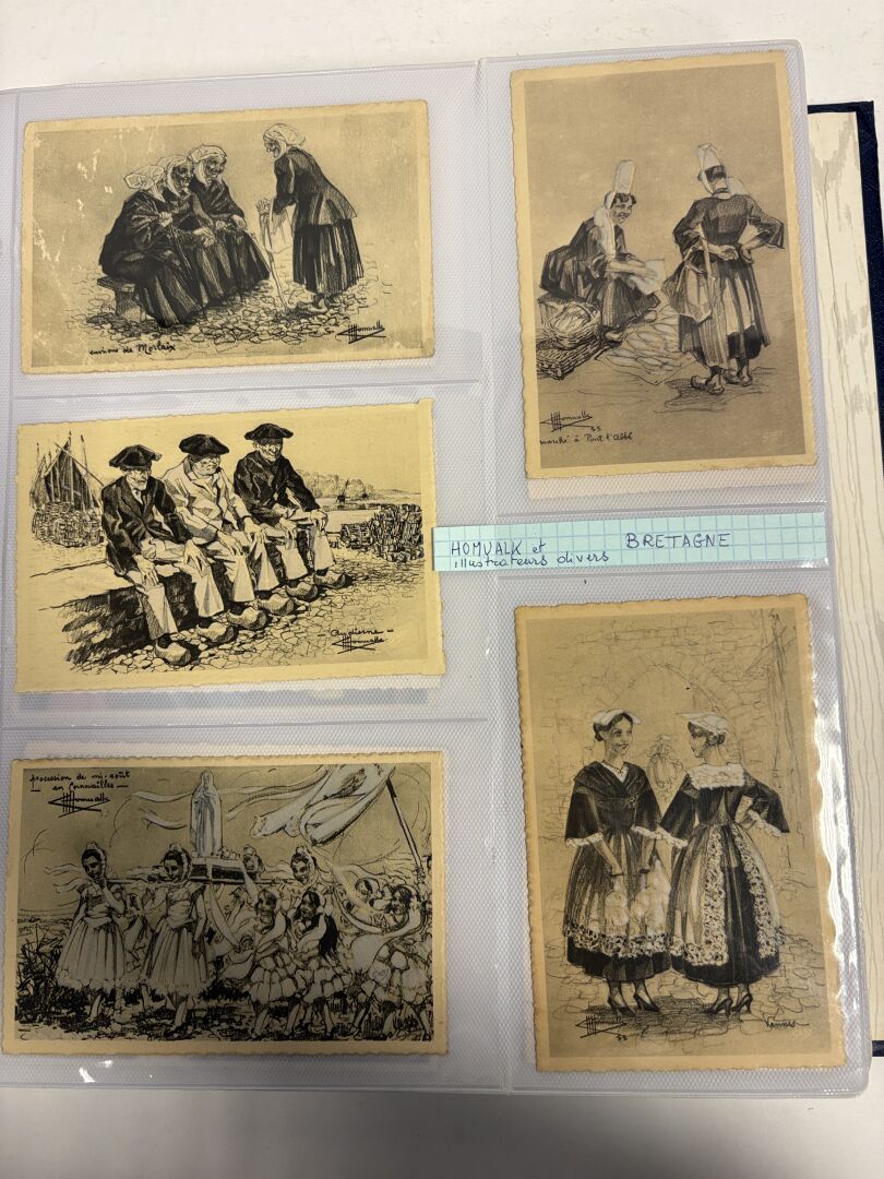 Album bleu de plus de 400 cartes postales d'illustrateurs divers dont HOMUALK, semi-modernes, Bretagne ...