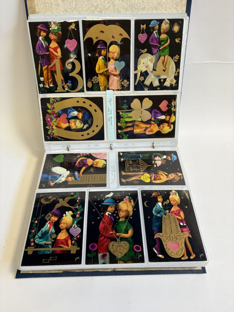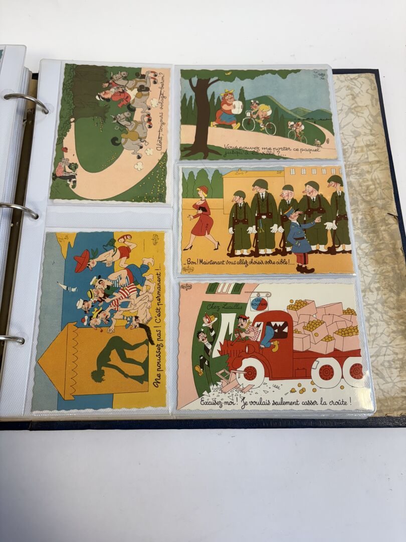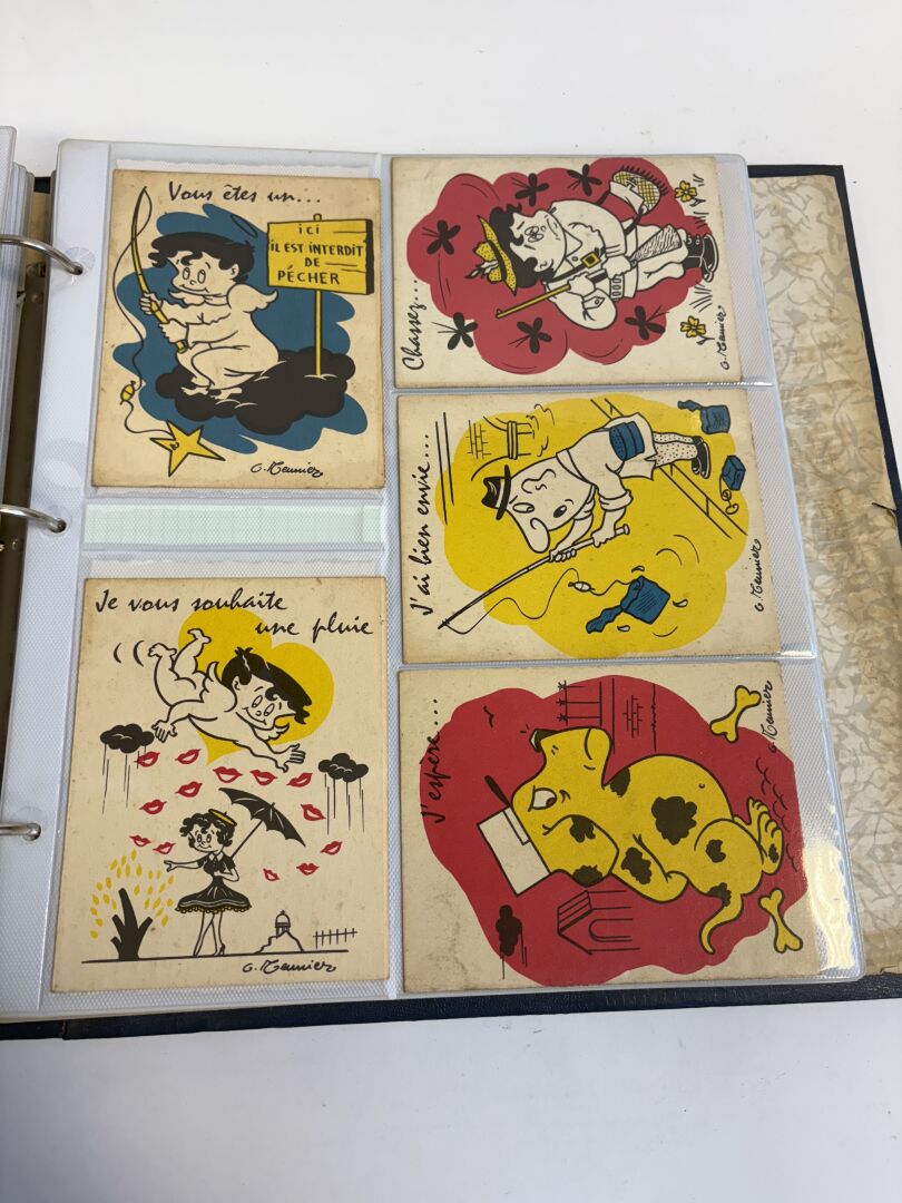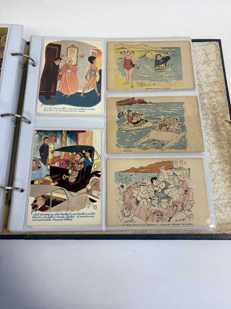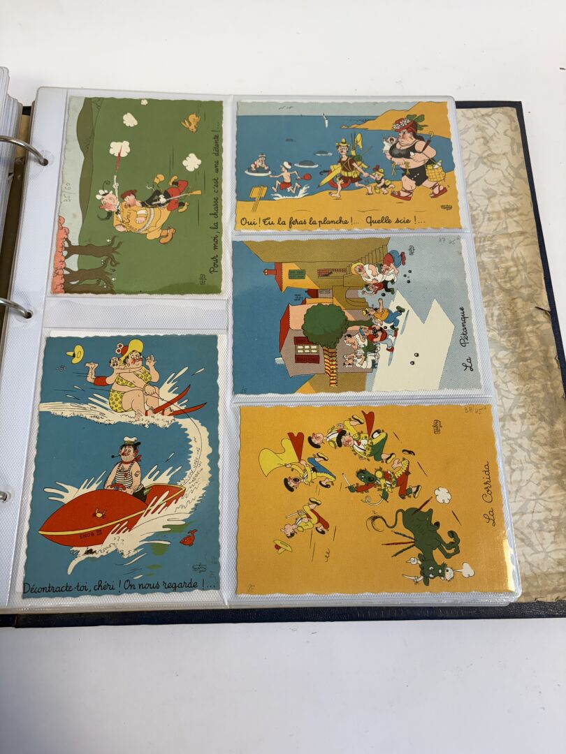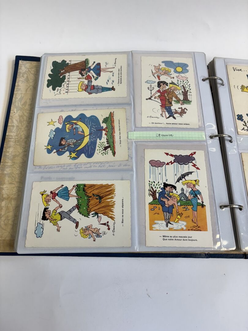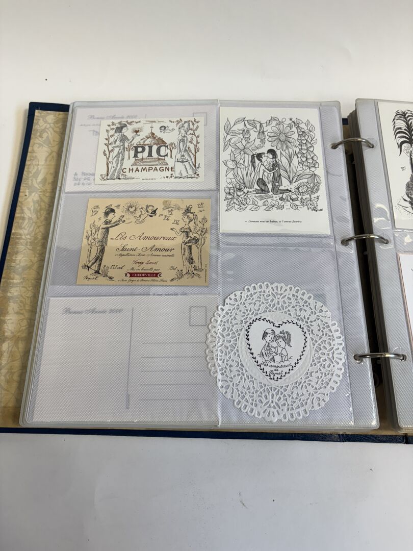 Important album bleu de plus de 300 cartes postales modernes sur la Saint Valentin avec les amoureux de Peynet et des cartes modernes humoristiques