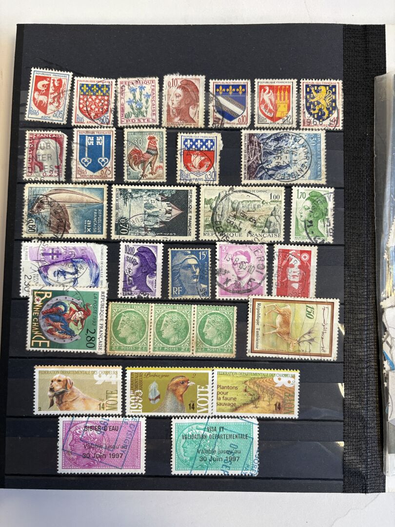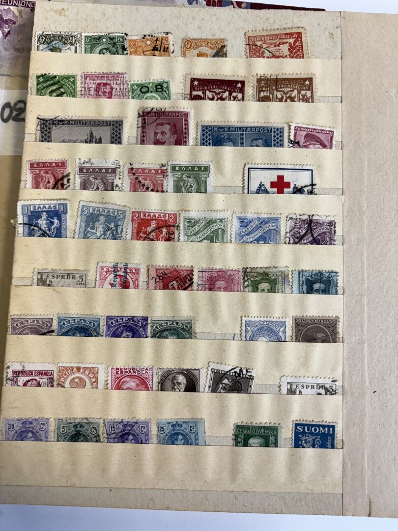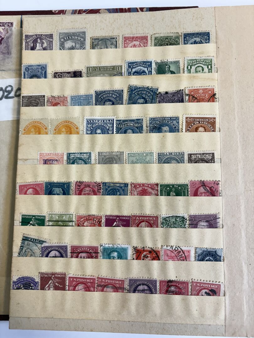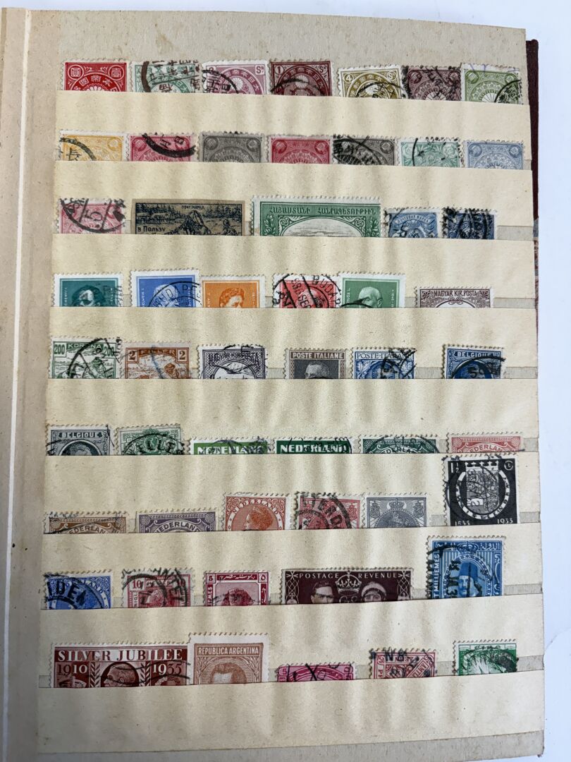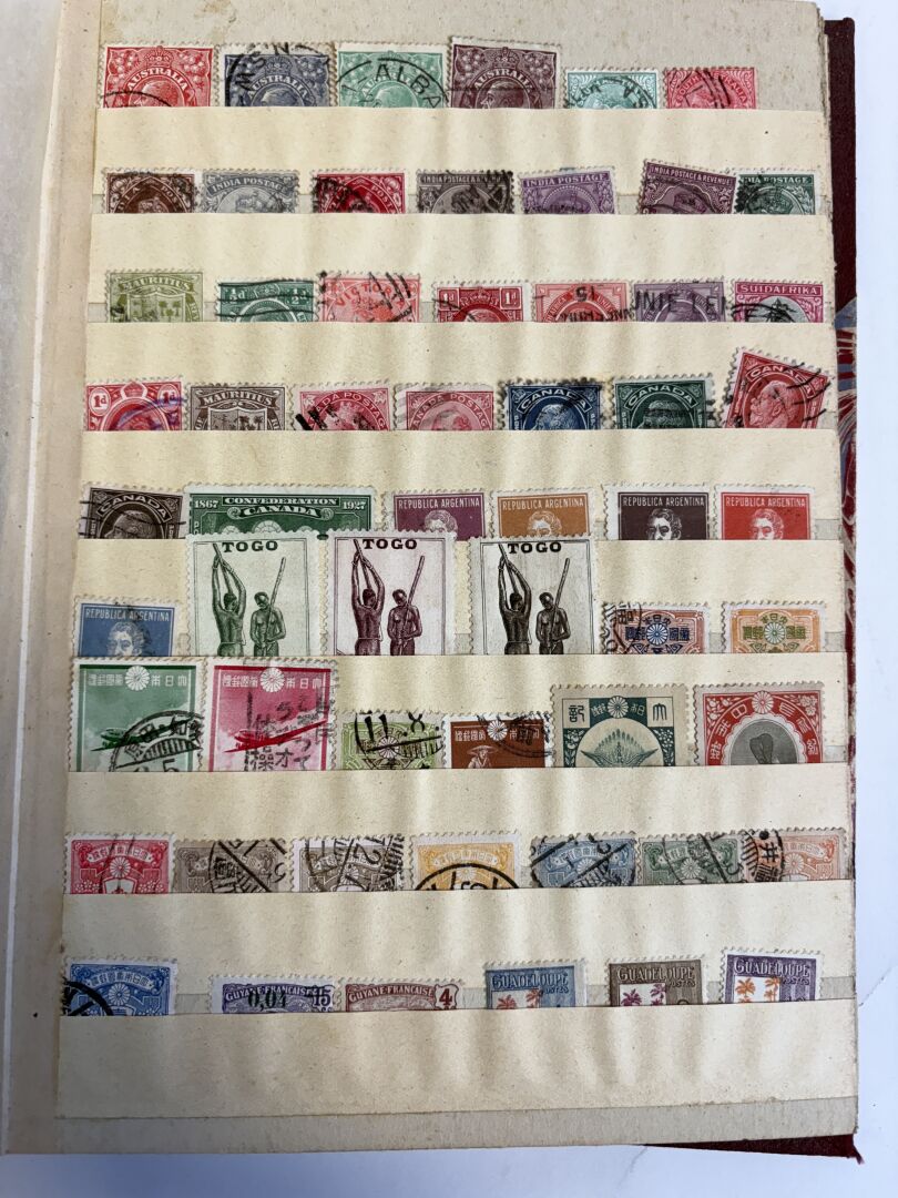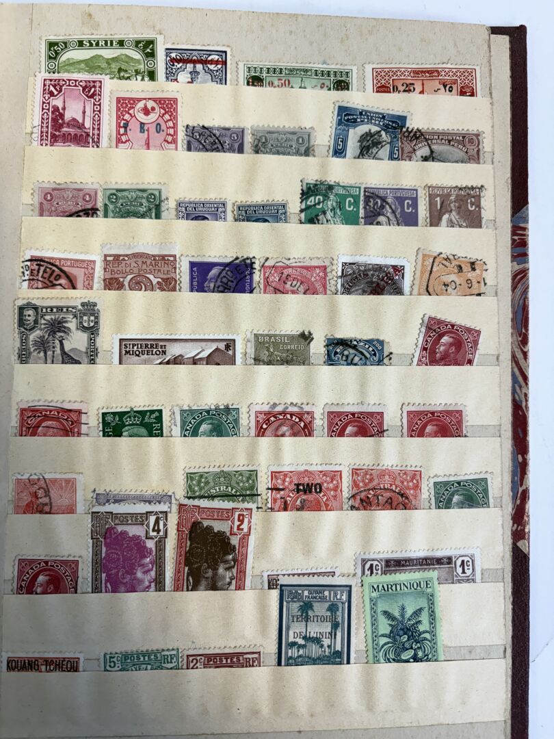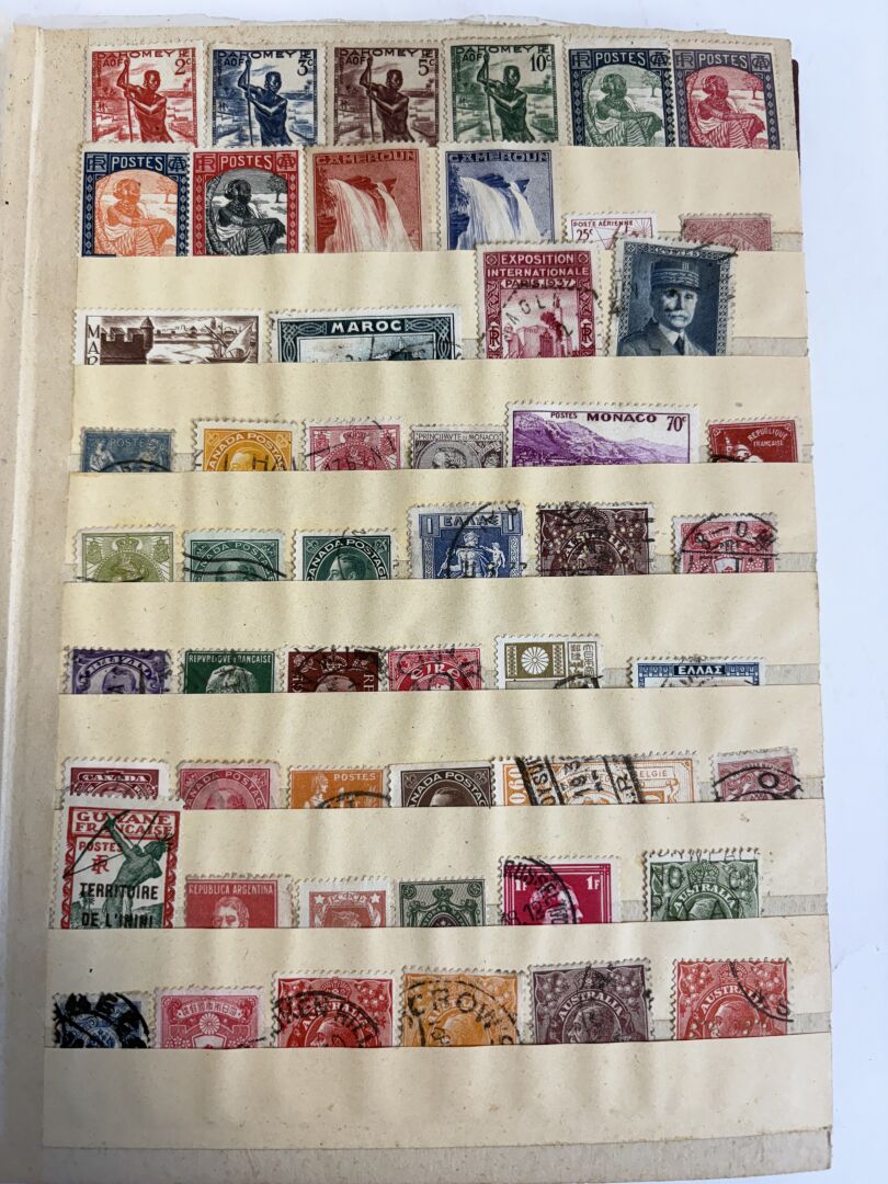 France, anciennes Colonies, Étranger. Lot de deux albums de timbres tous pays majorité oblitérés.