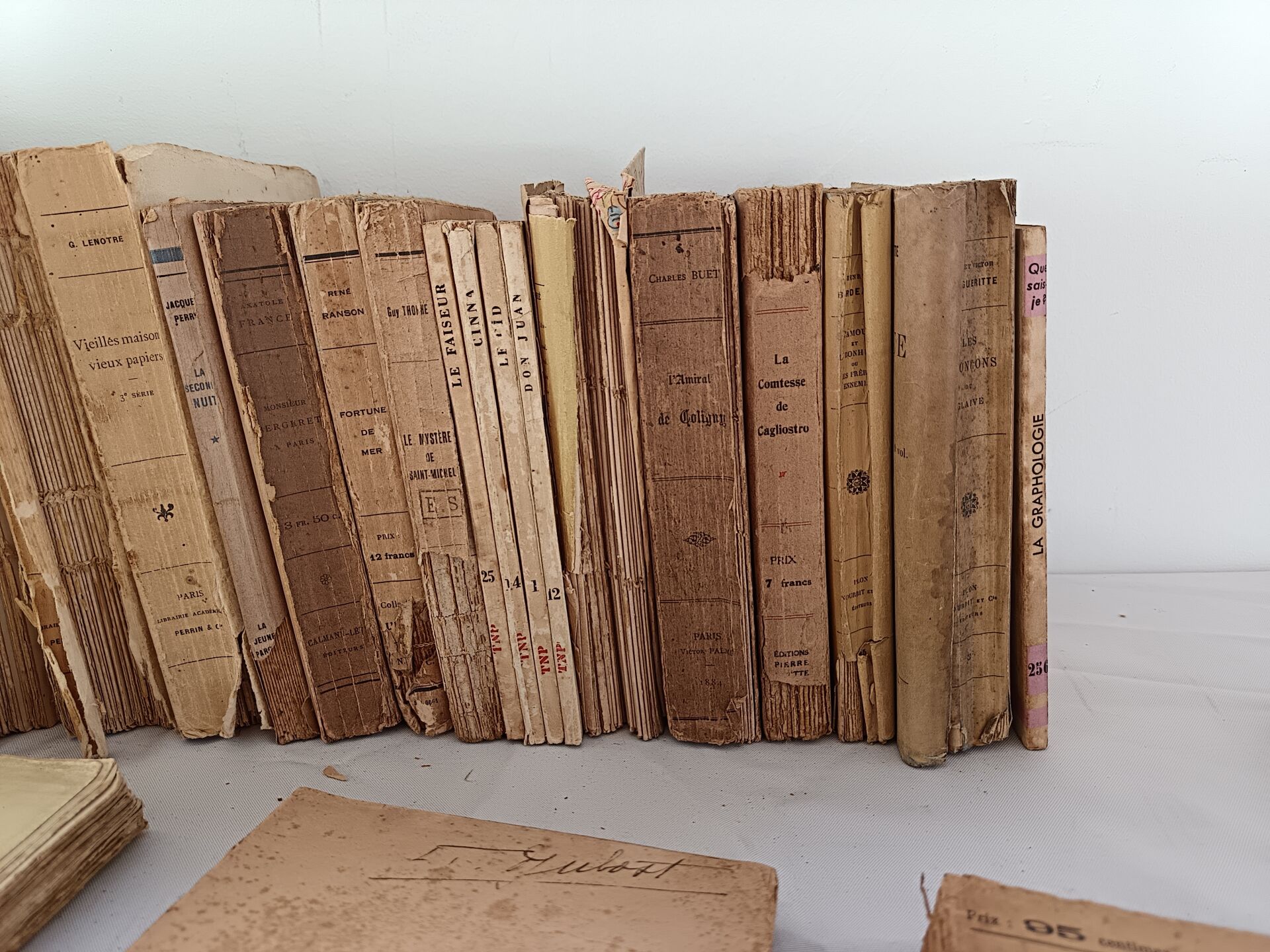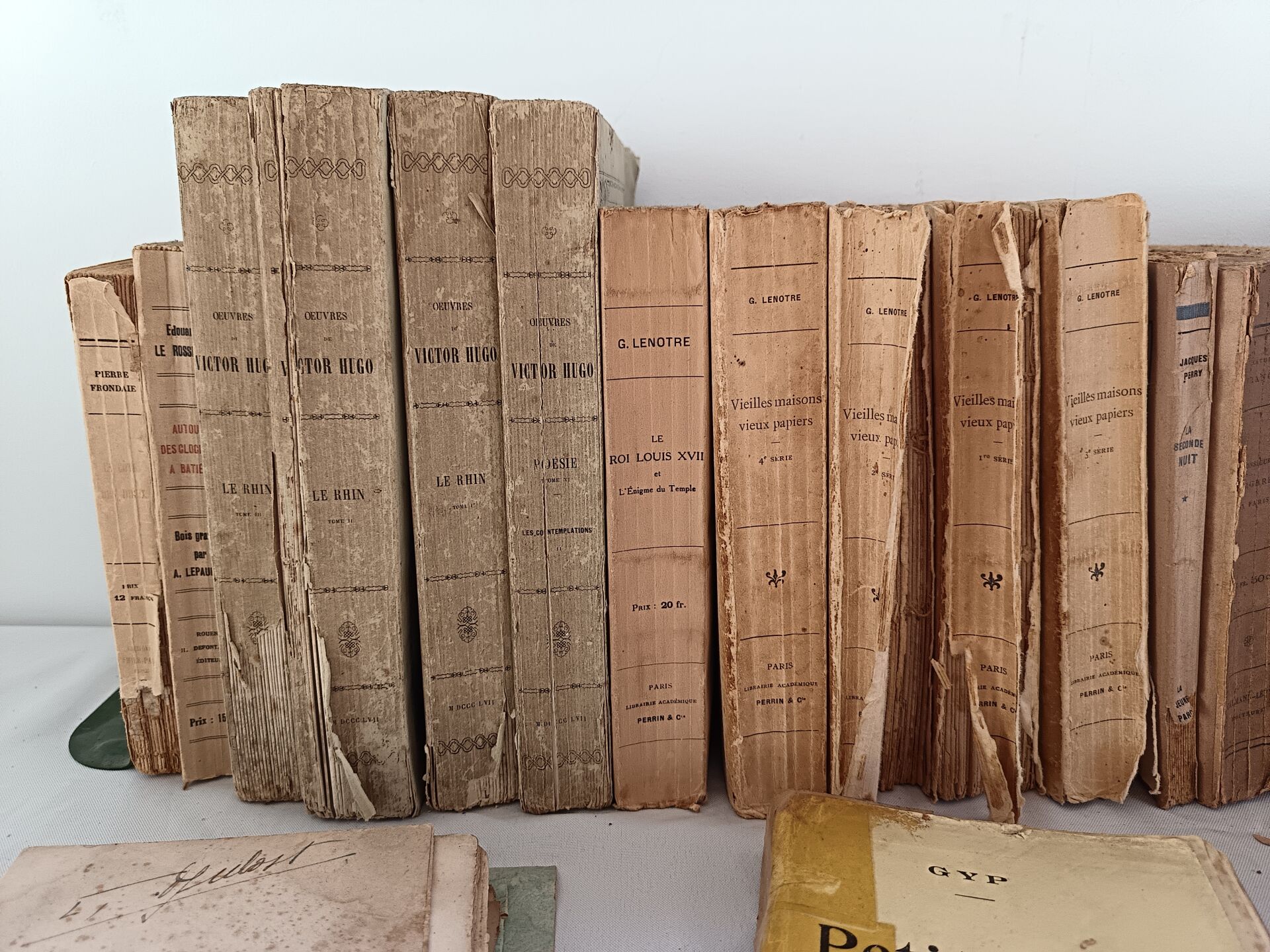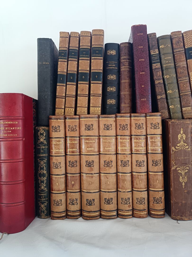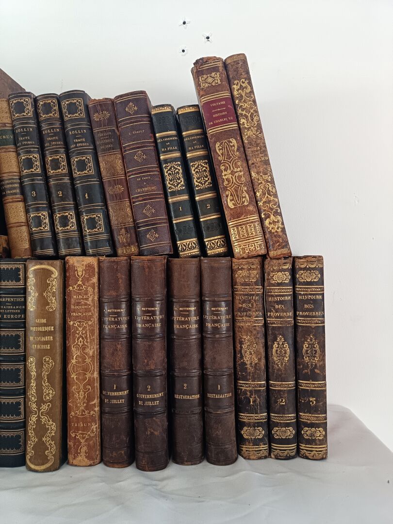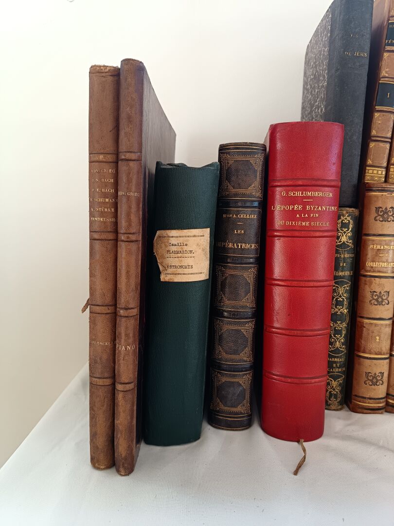 Important lot de livres dont : - Lot de livres reliés - Lot de deux livres manuscrits sur divers thèmes dont la géopolitique, l'histoire, la philosophie et la littérature - Lot de livres brochés
