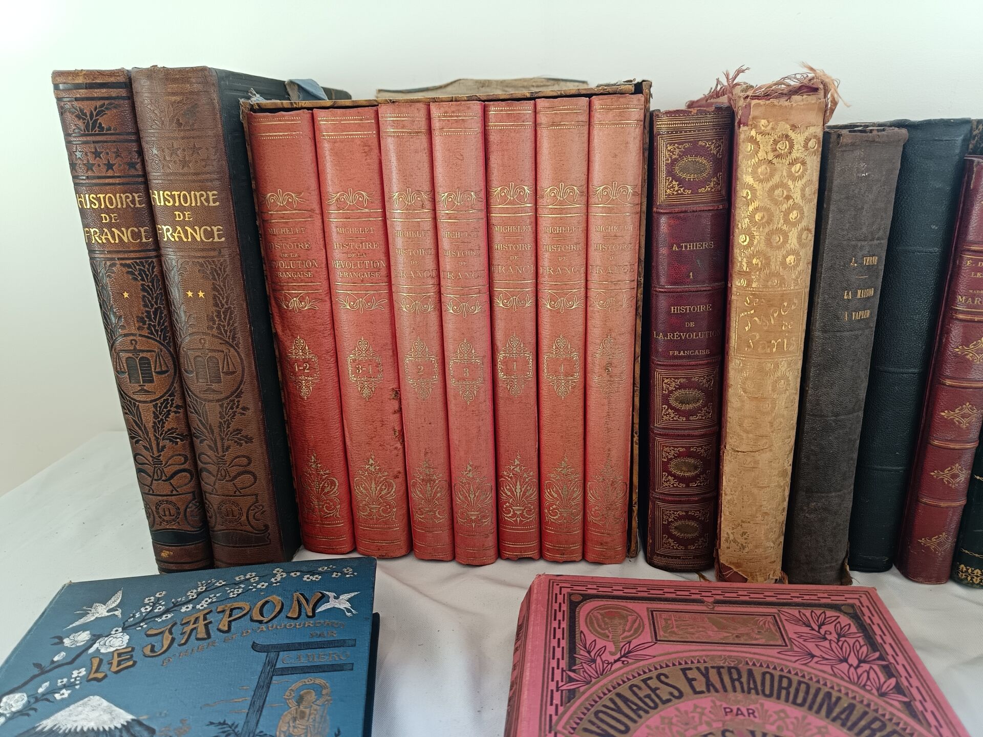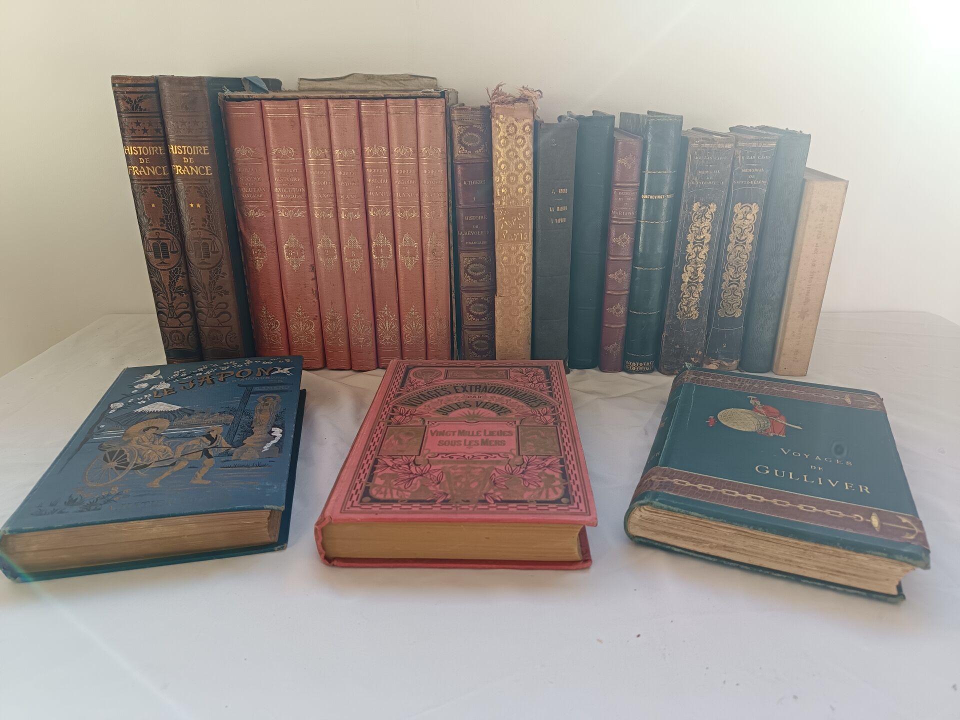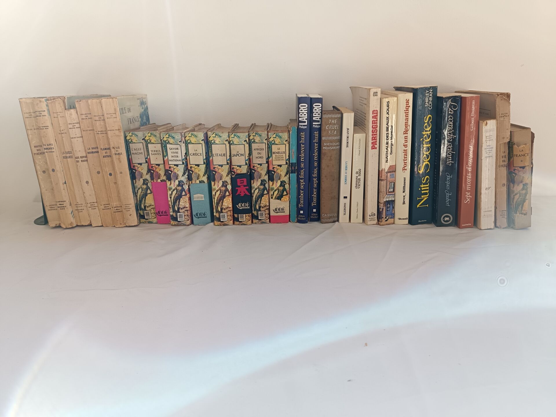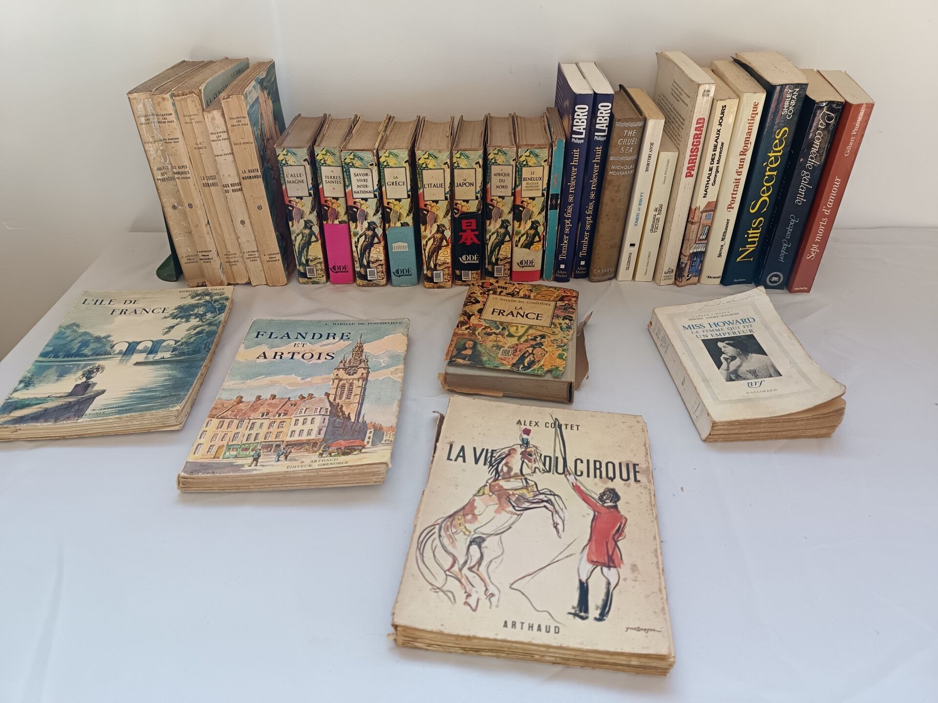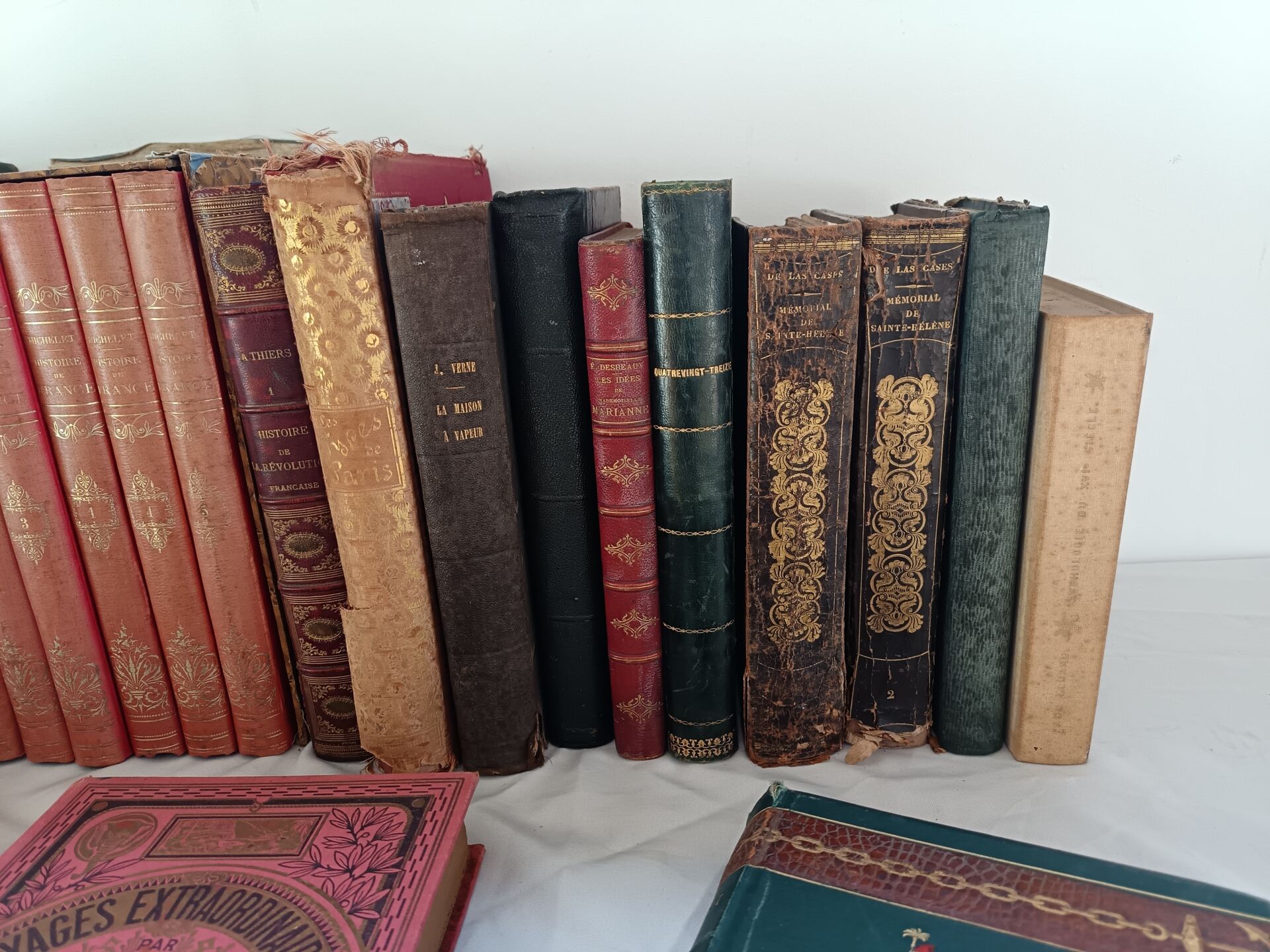Important lot de livres dont : - Lot de livres reliés - Lot de deux livres manuscrits sur divers thèmes dont la géopolitique, l'histoire, la philosophie et la littérature - Lot de livres brochés