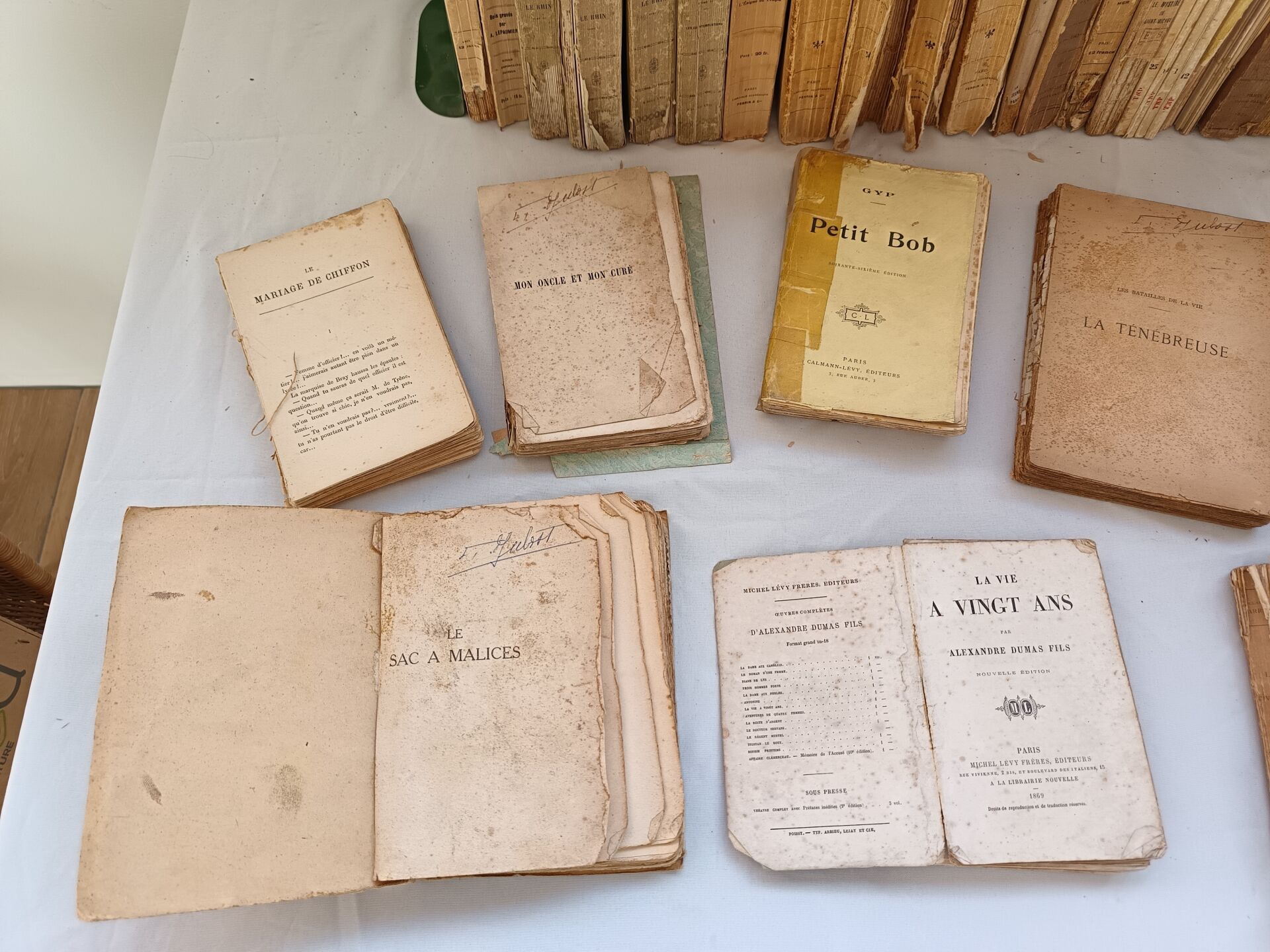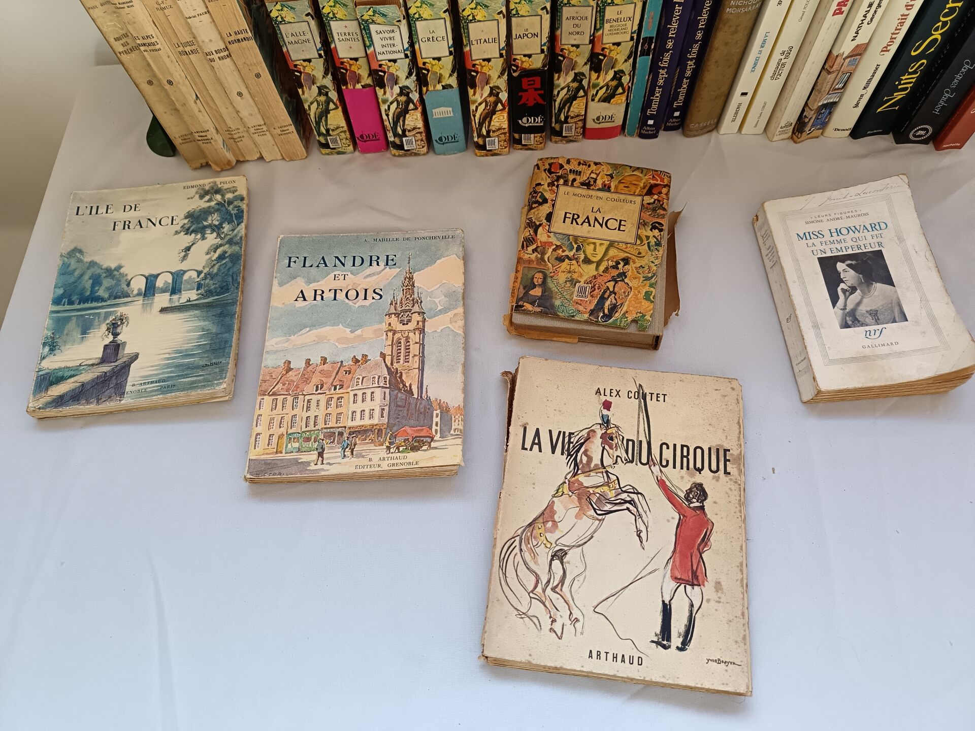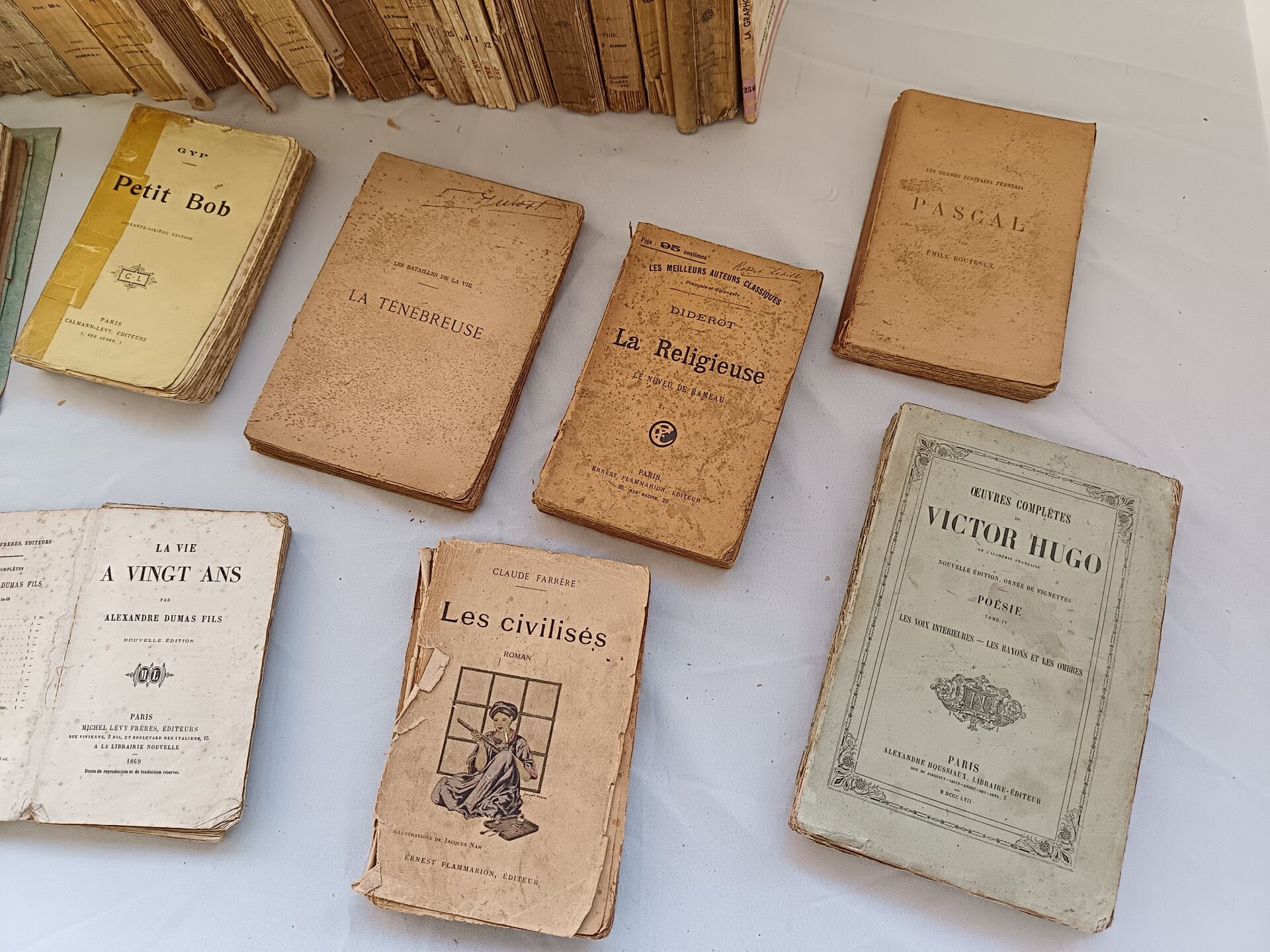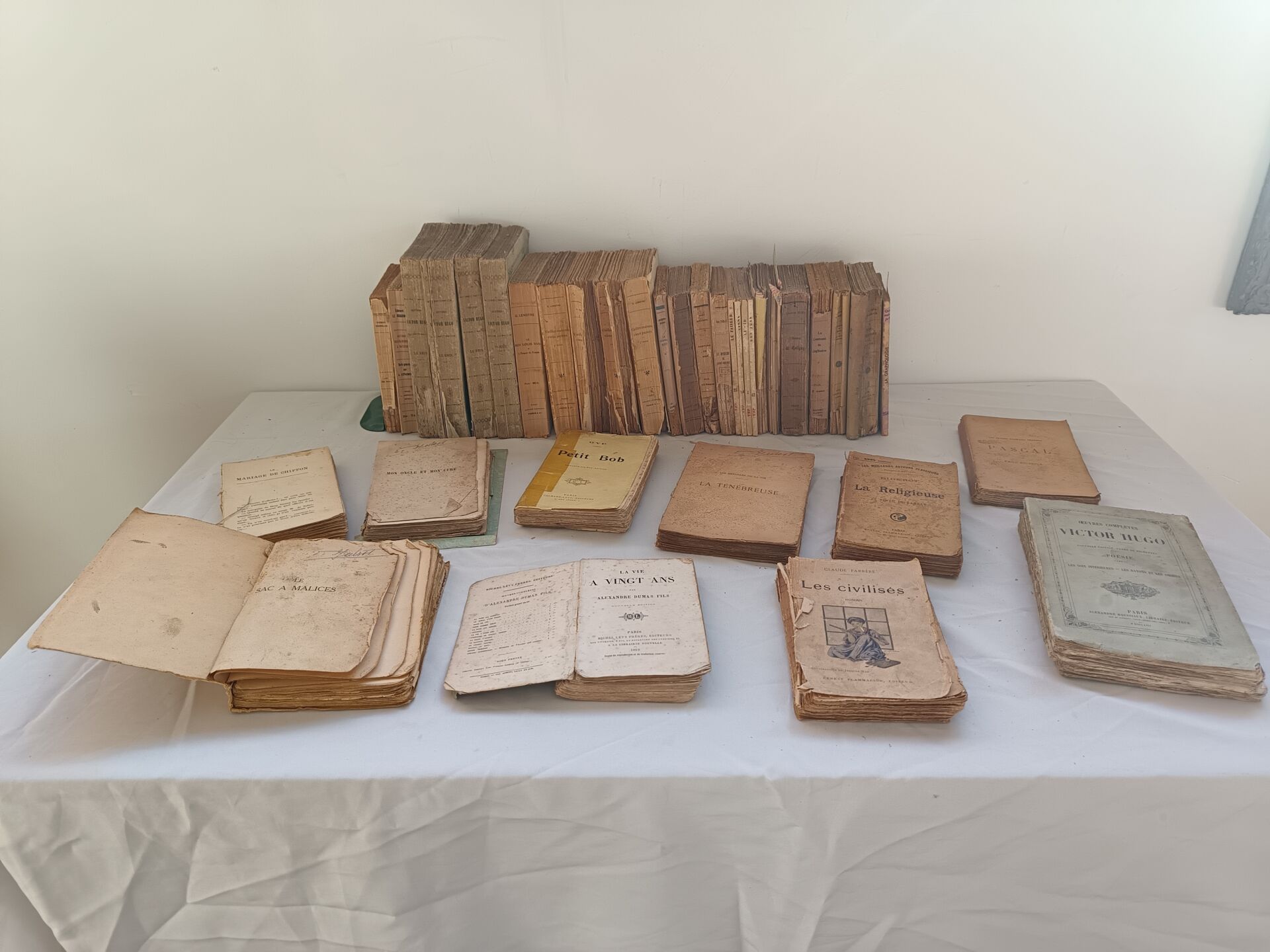 Important lot de livres dont : - Lot de livres reliés - Lot de deux livres manuscrits sur divers thèmes dont la géopolitique, l'histoire, la philosophie et la littérature - Lot de livres brochés