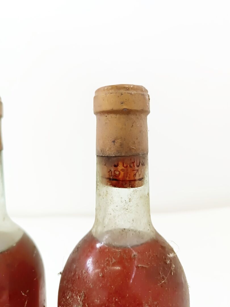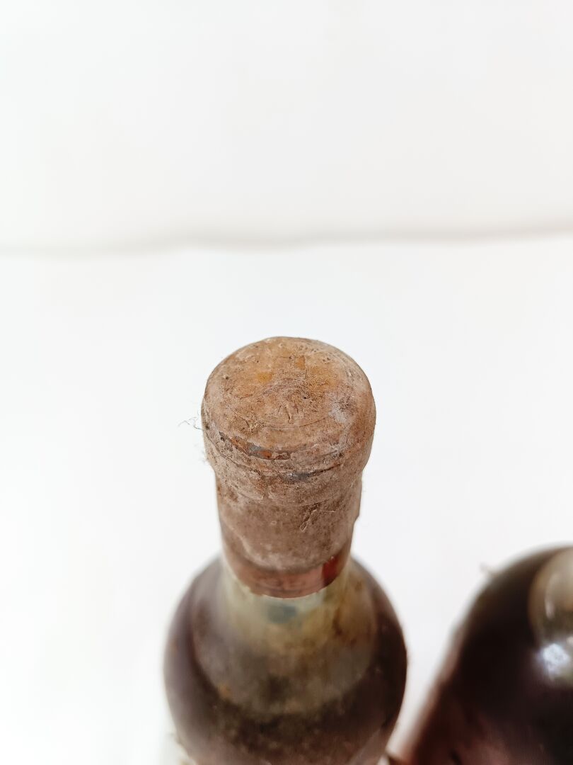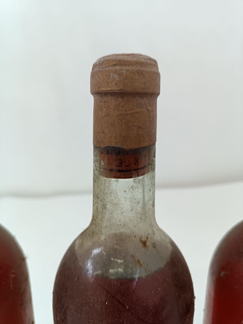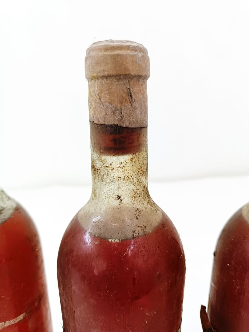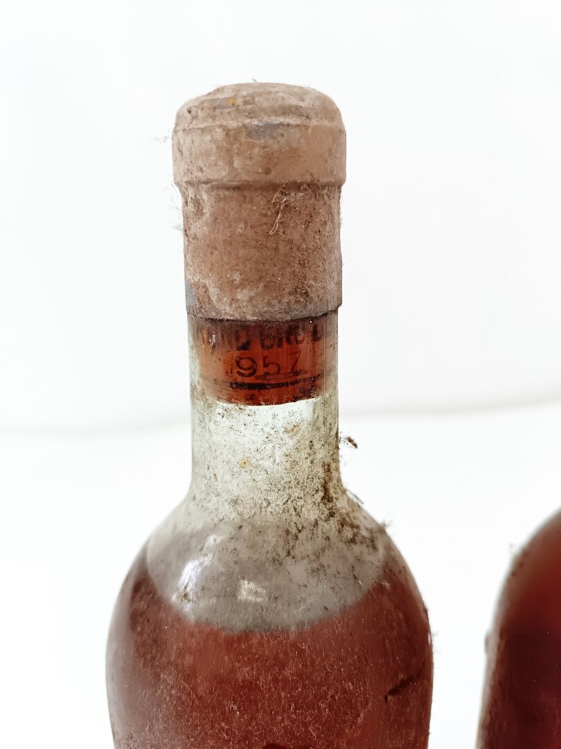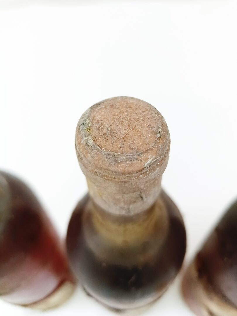4 bouteilles Chateau Coutet 1957 1er Cru Sauternes (niveaux haute épaule, etiquettes très abimées, déchirées, millésimes sur les bouchon)