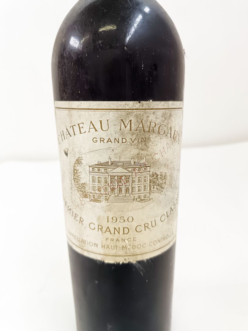 1 bouteille Chateau Margaux 1950 1er GCC Margaux (Niveau haute épaule. Etiquette très abimée, tachée, griffée)
