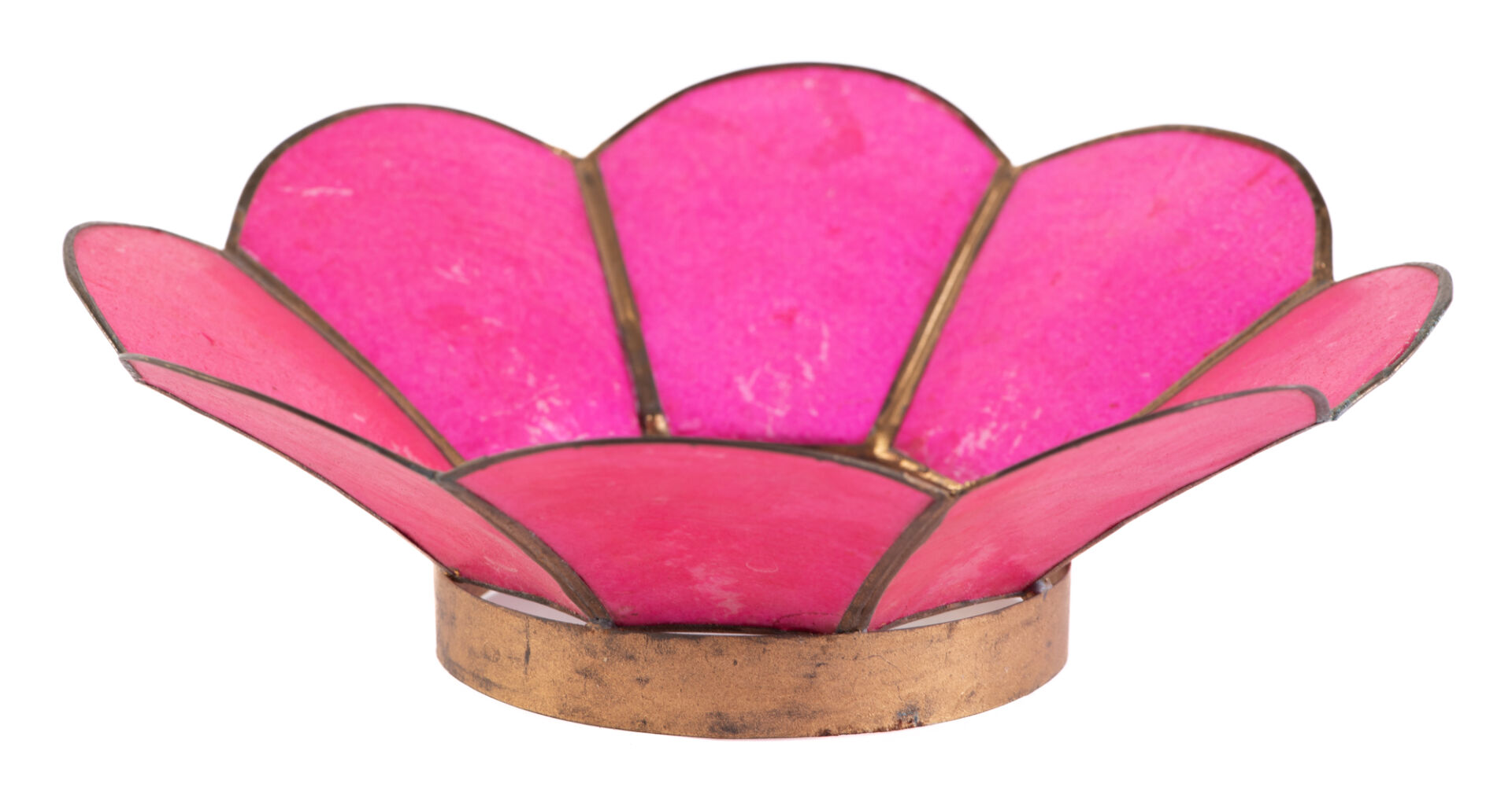 Suspension en nacre beige et abat-jour en nacre rose et monture en laiton. Vers 1960. H : 6 cm ; D : 18 cm H : 24 cm ; D : 51 cm