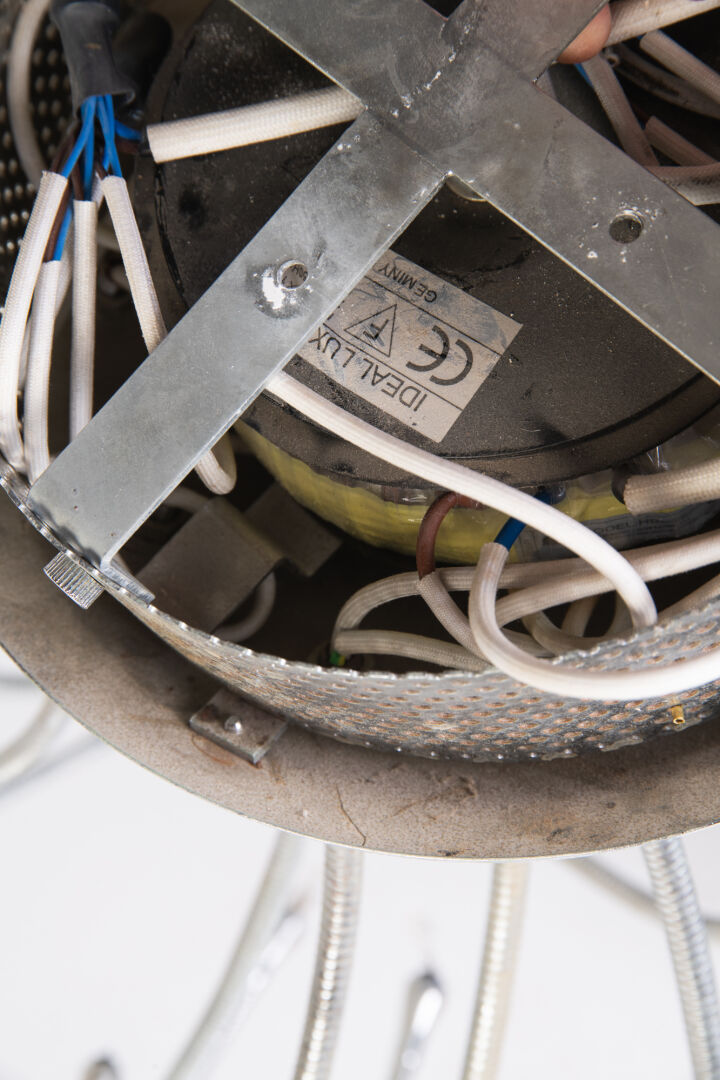 Idéal Lux. Plafonnier type spoutnik en métal chromé. H : 50 cm ; D base : 25 cm