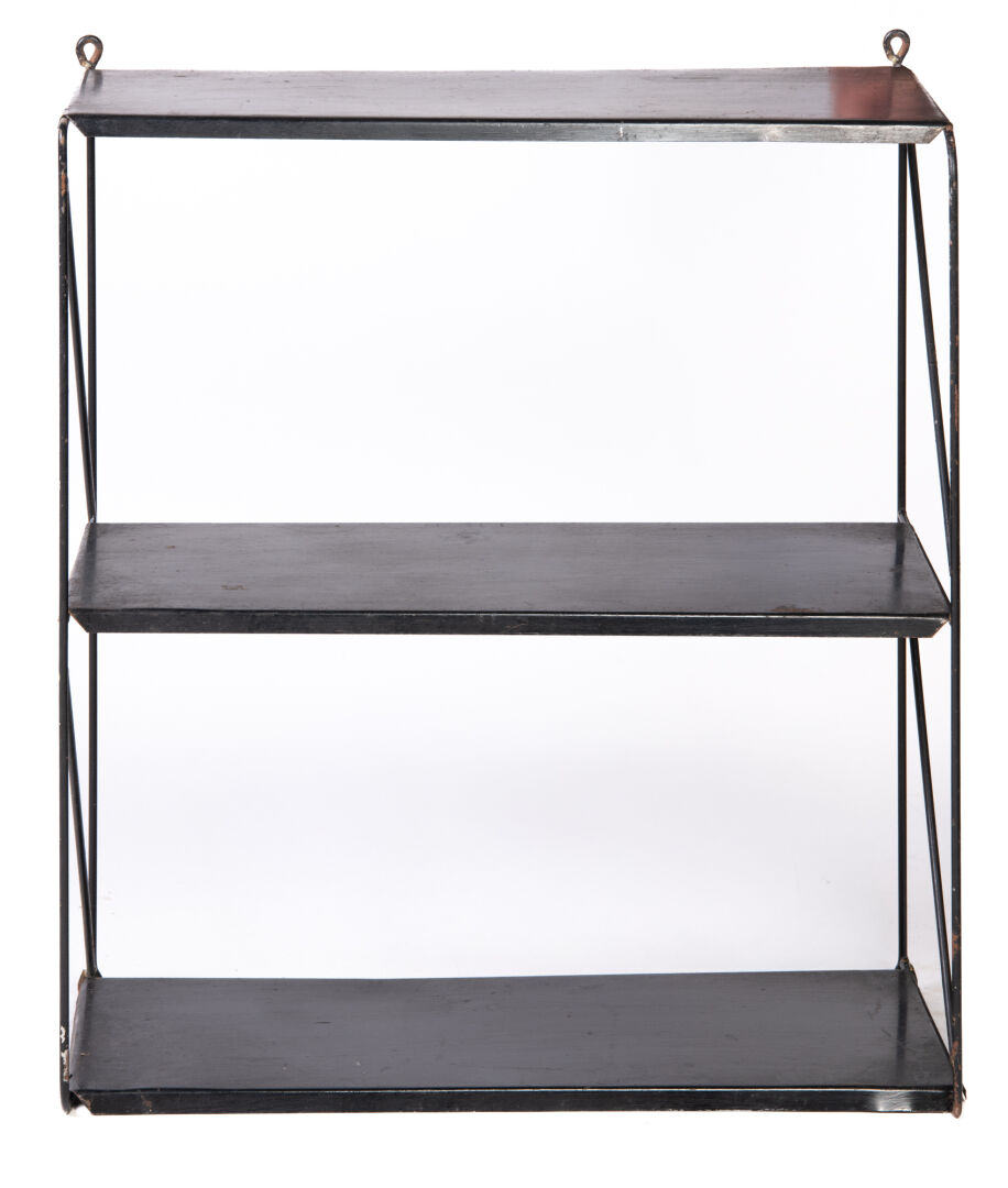Dans le goût de String ou Tomado. Étagères dites "String" en métal laqué noir avec trois tablettes en bois. Vers 1960-1970. H : 55 cm ; L : 48,6 cm ; l : 16,5 cm