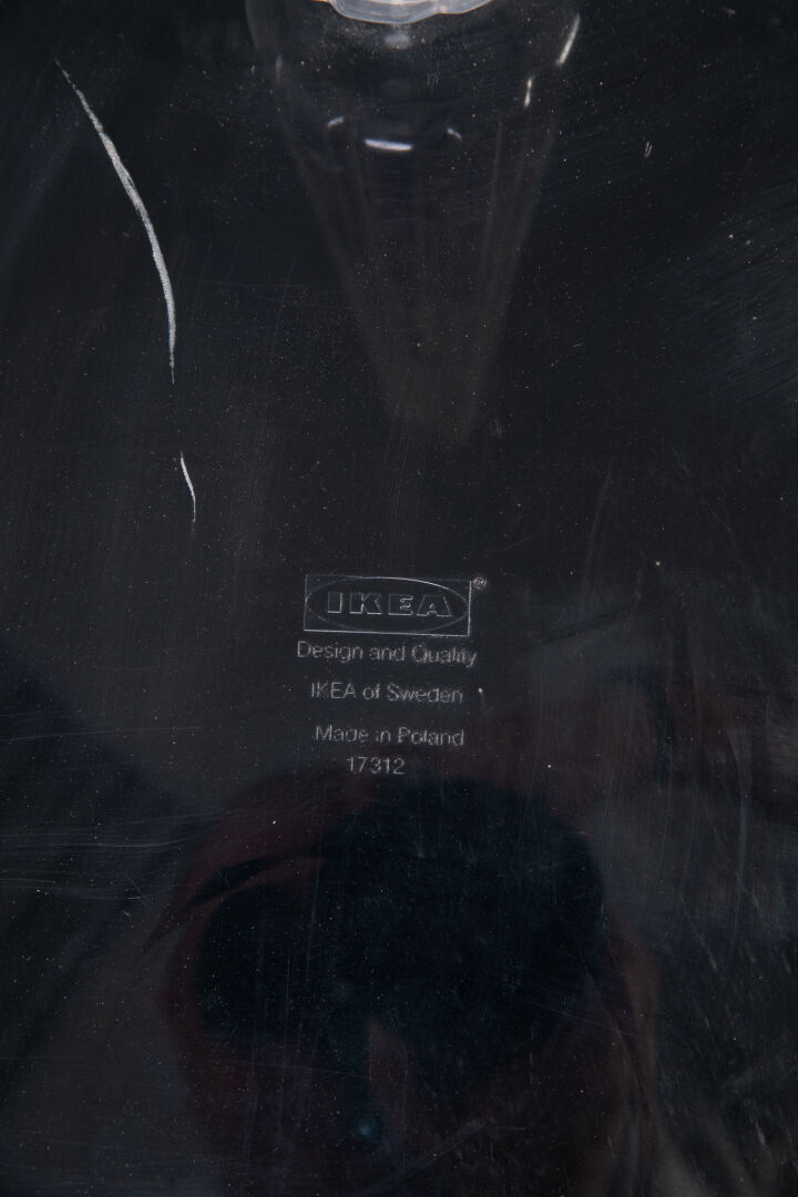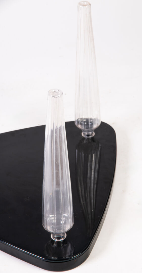Maria VINKA pour Ikea, Suède. Table modèle "Bolso" en plastique noir et pieds transparents pouvant être garnis. Vers 1990. H : 41,5 cm ; D : 51,5 cm
