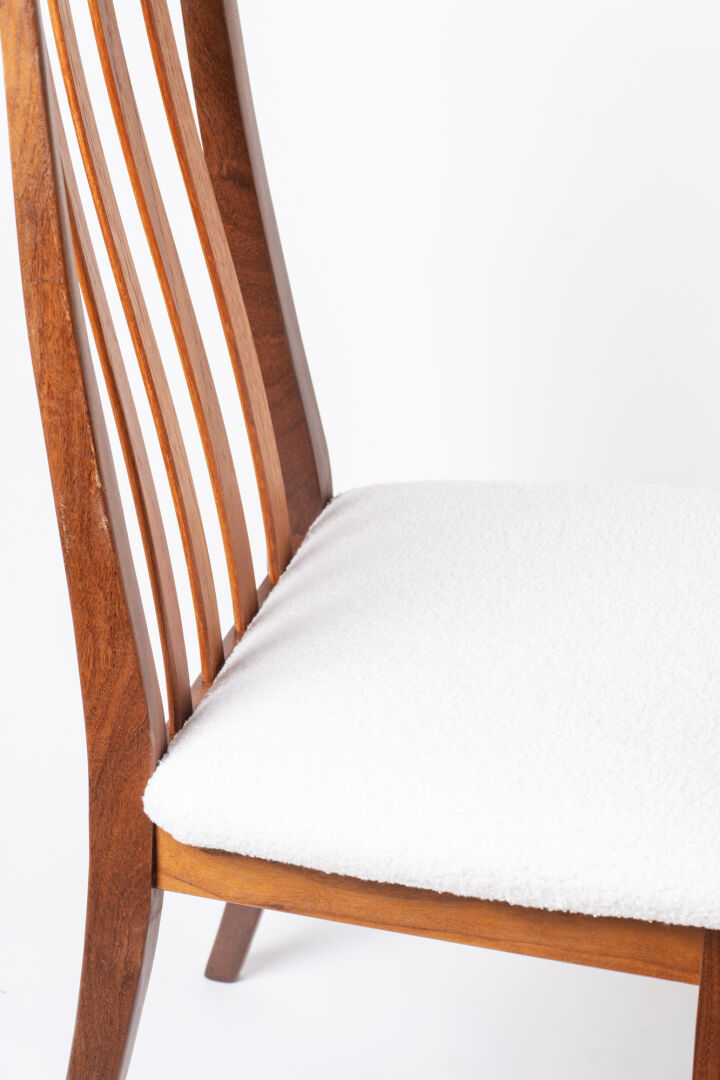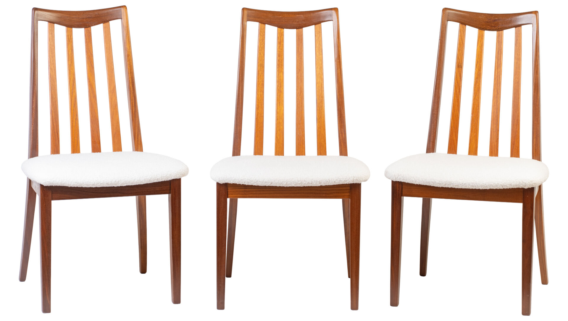 G-Plan. Suite de six chaises en teck. Vers 1960-1970. H : 90 cm ; L : 46 cm ; l : 49 cm