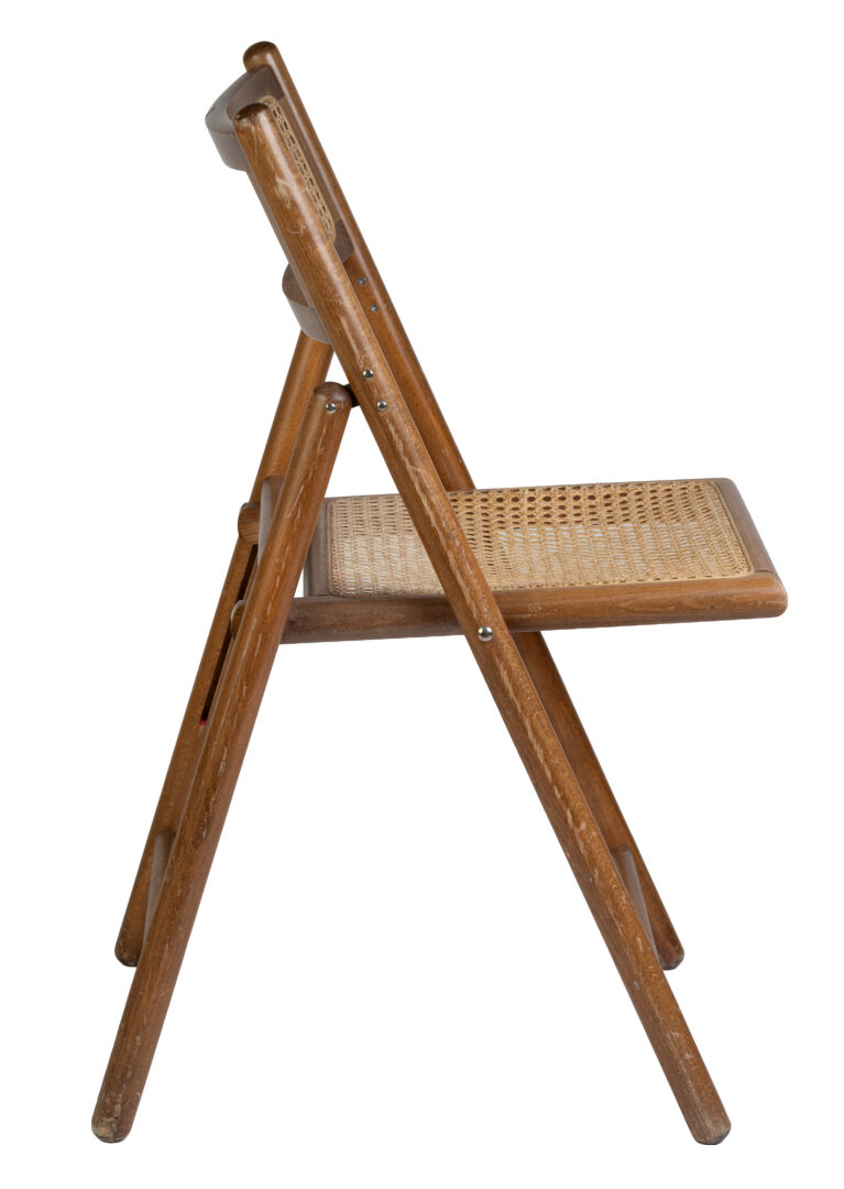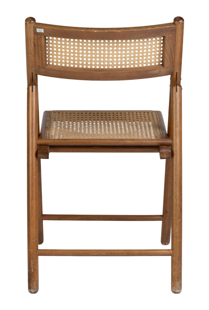 Italie. Chaise pliante en bois et assise cannée. H : 80 cm ; L : 38 cm ; l : 50 cm