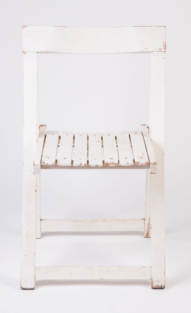 Aldo JACOBER (1939) pour Bazanni, Italie. Chaise pliante "Trieste" en bois. H : 73 cm ; L : 45 cm ; l : 45 cm