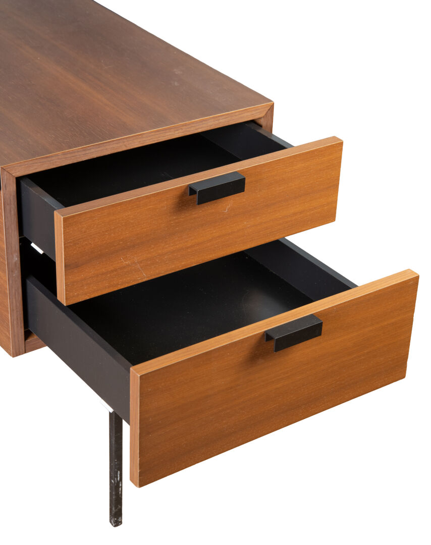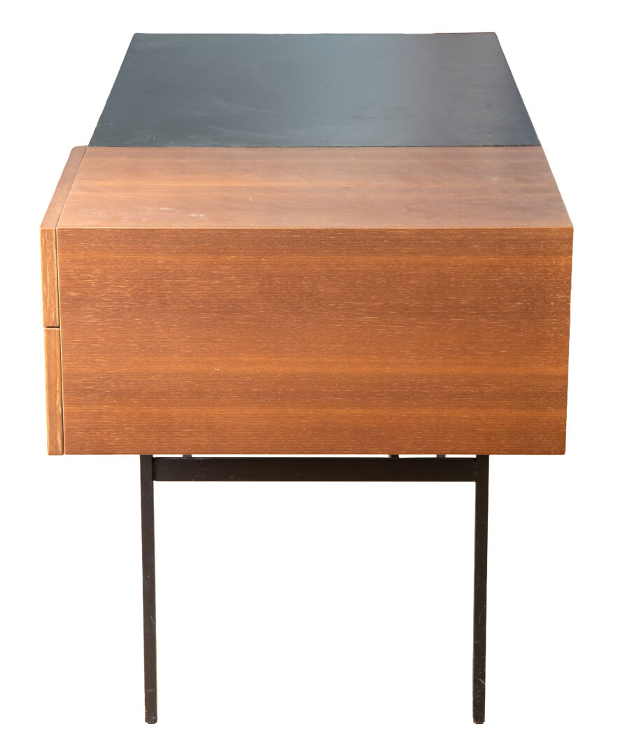 Pierre PAULIN (1927-2009) pour Ligne Roset, Bureau modèle "CM 141". Plateau en stratifié noir, bloc tiroir en placage de noyer, structure du piètement en tubulure en acier noir. Vers 1990. H : 74 cm ; L : 130 cm ; l : 62 cm