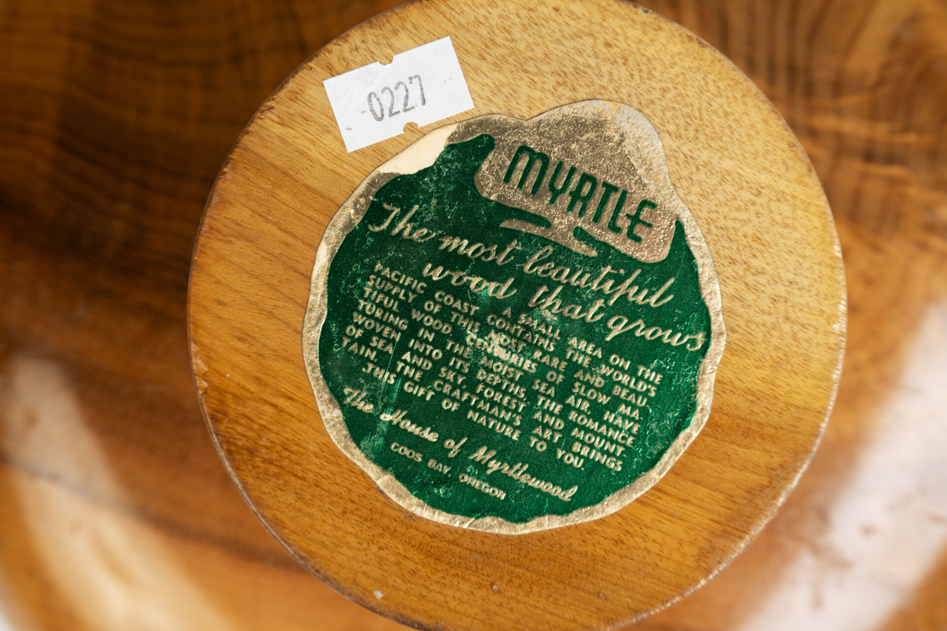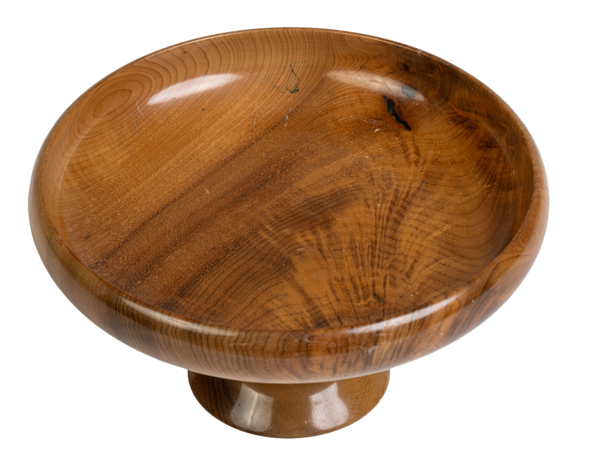 Etats-Unis. Coupe à fruits en bois de myrte sur pied. Porte étiquette sous la base. H : 13 cm ; D : 25 cm