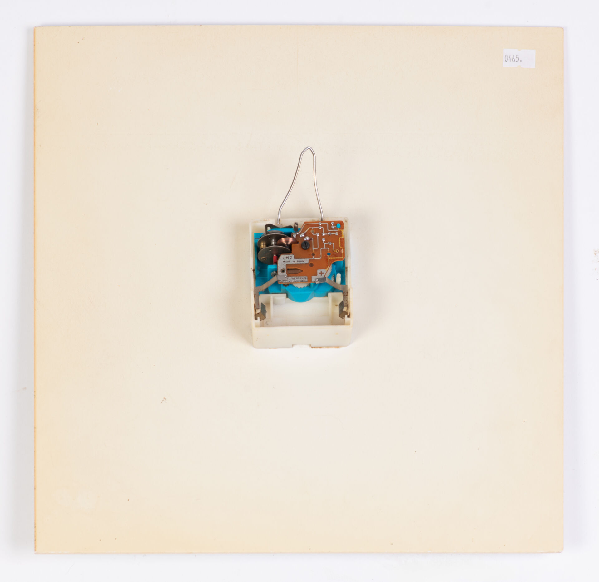 Horloge imitant les feuilles d'un cahier d'écolier. Vers 1980. 34 x 34 cm