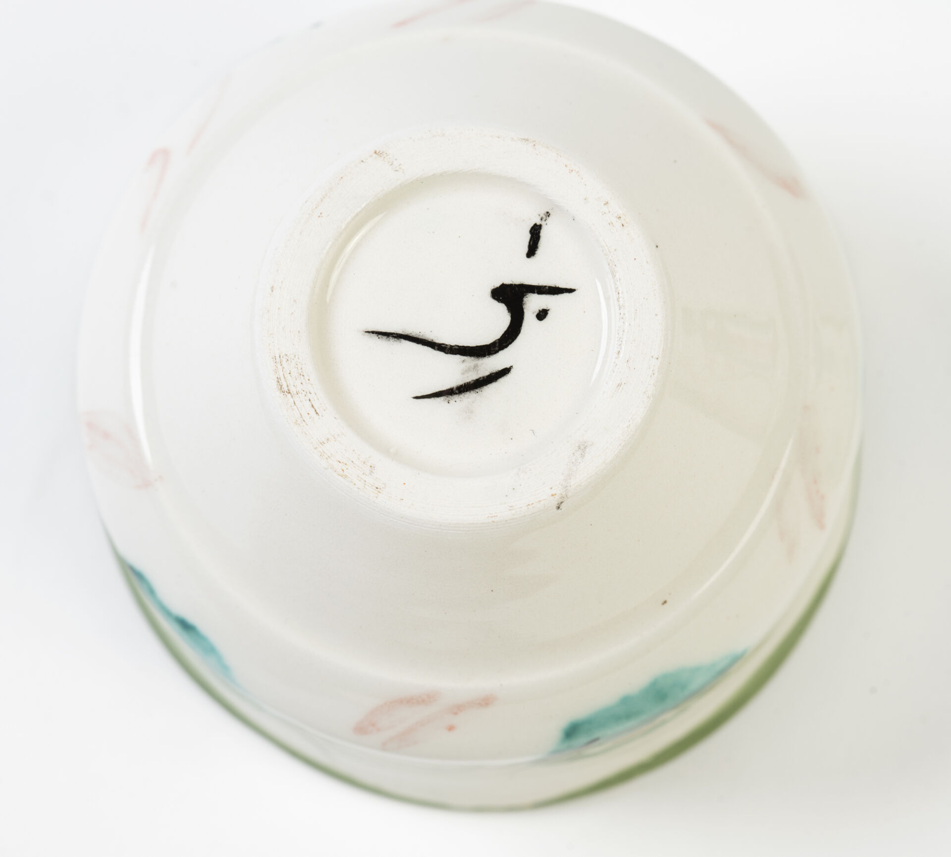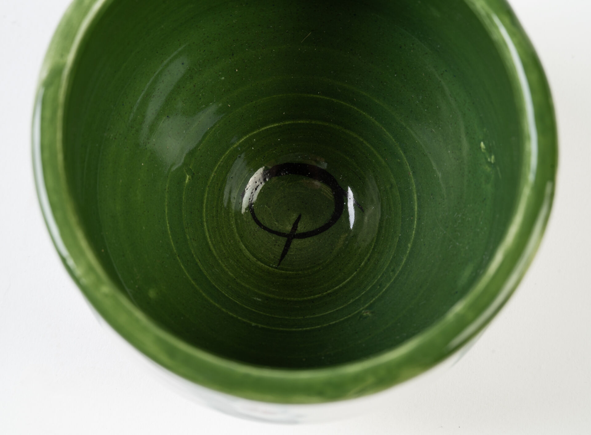Deux gobelets en céramique émaillée verte et blanche. H : 6.5 cm ; D : 9 cm