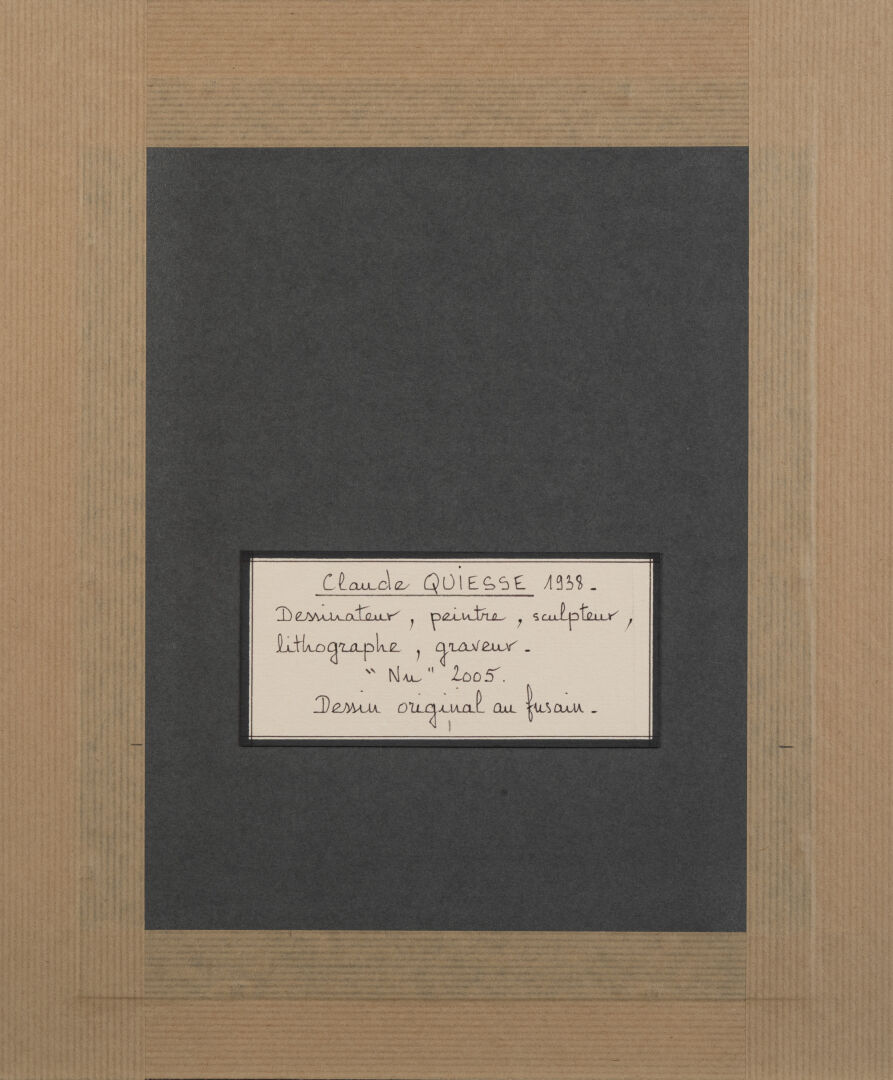 Claude QUIESSE (1938). "Femme Nue" Fusain signé en bas à droite. 23.5 x 16 cm à vue