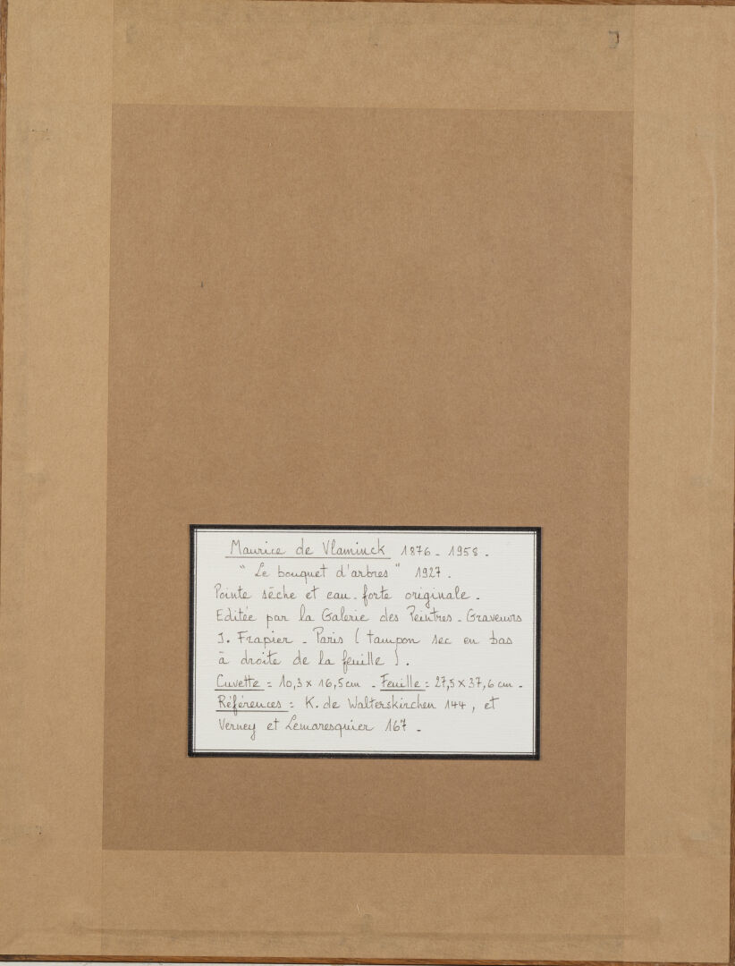 D'après Maurice DE VLAMINCK (1876-1958). "Le bouquet d'arbre". Pointe sèche sur papier. 20 x 14,5 cm à vue