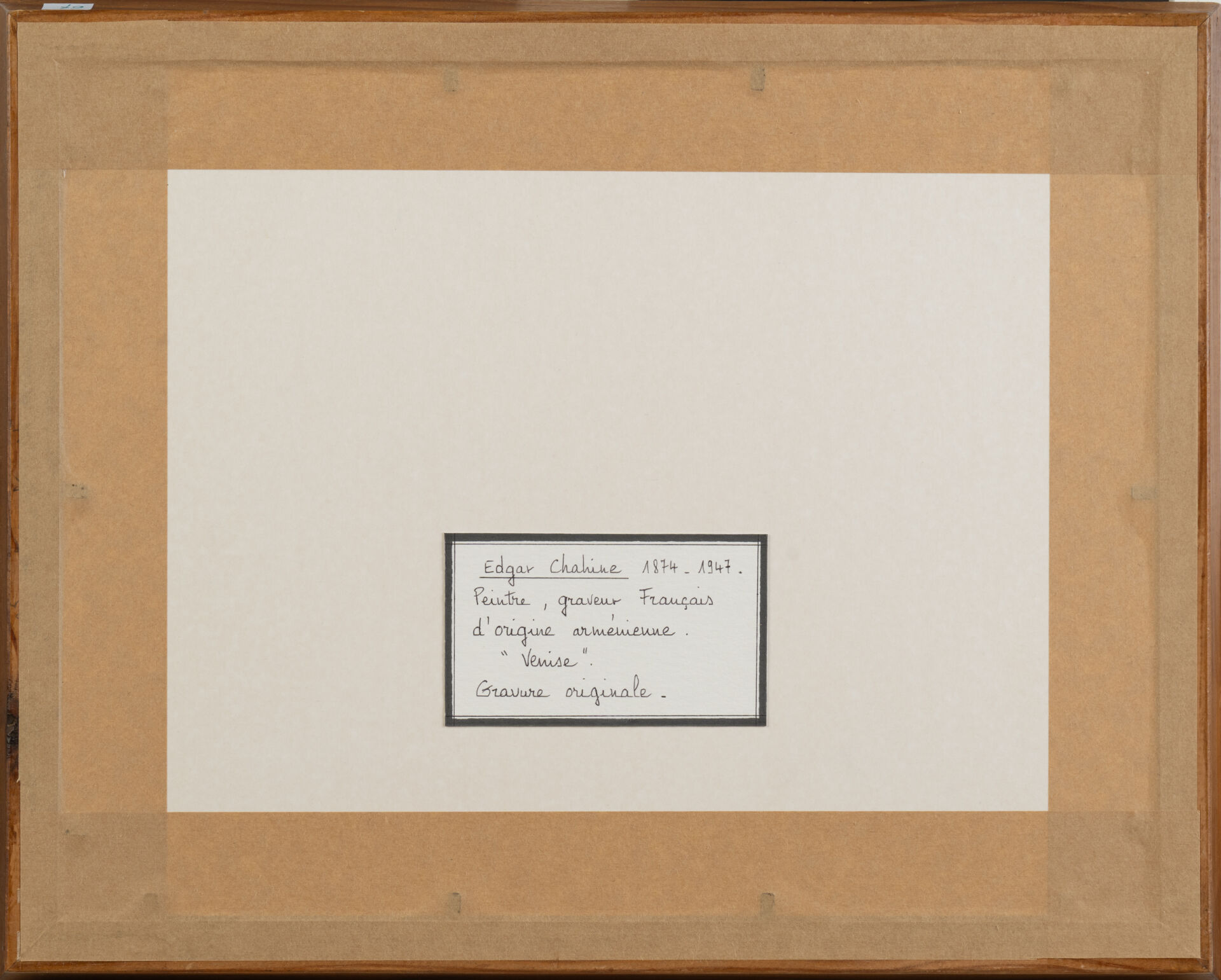D'après Edgar CHAHINE (1874-1947). "La Morte. Il Bacino de San Marco". Gravure à la pointe sèche sur papier. 14.5 x 21.5 x cm à vue Un exemplaire est conservé au The Museum of Fine Arts Houston