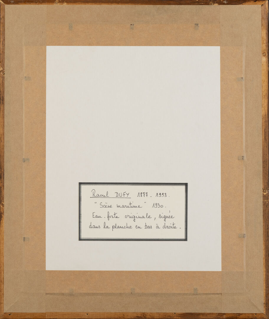 D'après Raoul DUFY (1877-1953). "Marseille". Eau-forte sur papier signée en bas à droite tirée pour E. Montfort, La Belle Enfant ou L'Amour à quarante ans. Paris, Ambroise Vollard, 1930 21,5 x 17 cm à vue