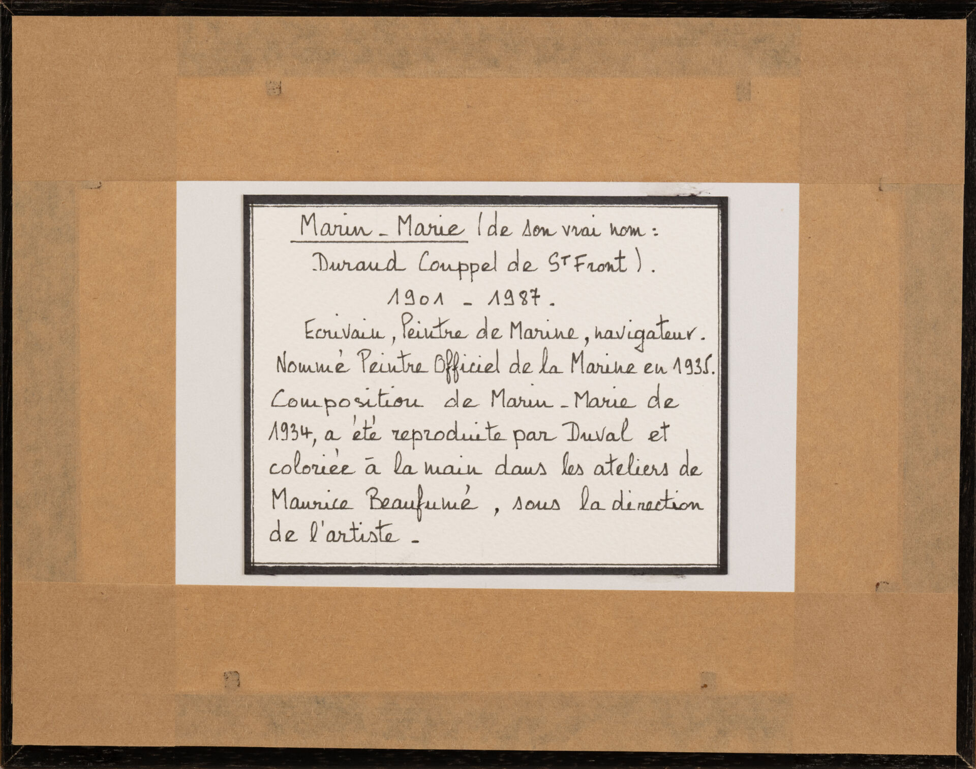 D'après Marin Marie (1901-1987). "Les marins". Reproduction sur papier par Moudebaigt et colorée à la main dans les ateliers Beaufumé. 10 x 14 cm à vue