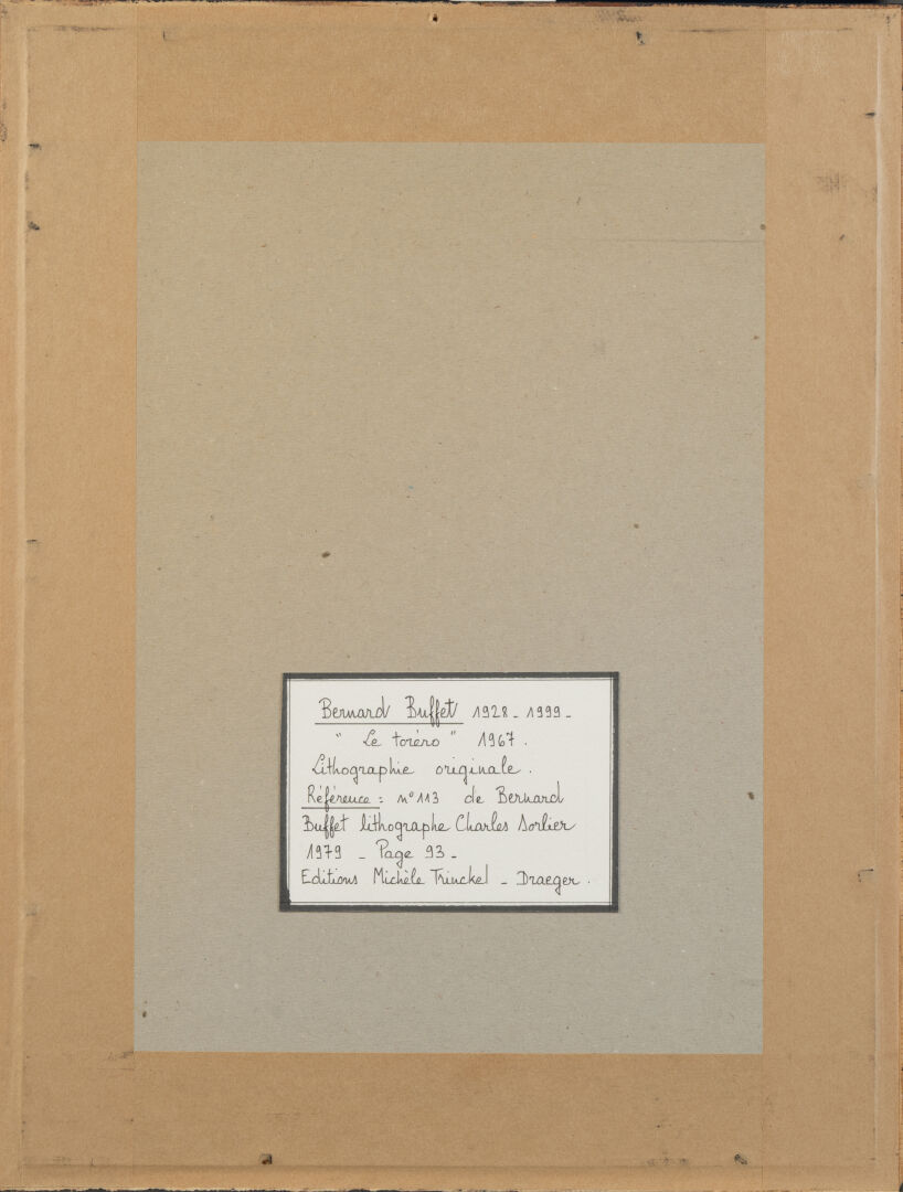 D'après Bernard BUFFET (1928-1999). "Torero - 1967". Lithographie sur papier. 30 x 23 cm à vue