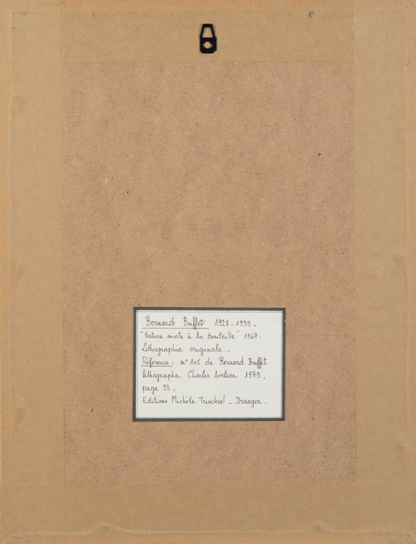 D'après Bernard BUFFET (1928-1999). "Nature morte à la bouteille". Lithographie sur papier. 30 x 23 cm à vue