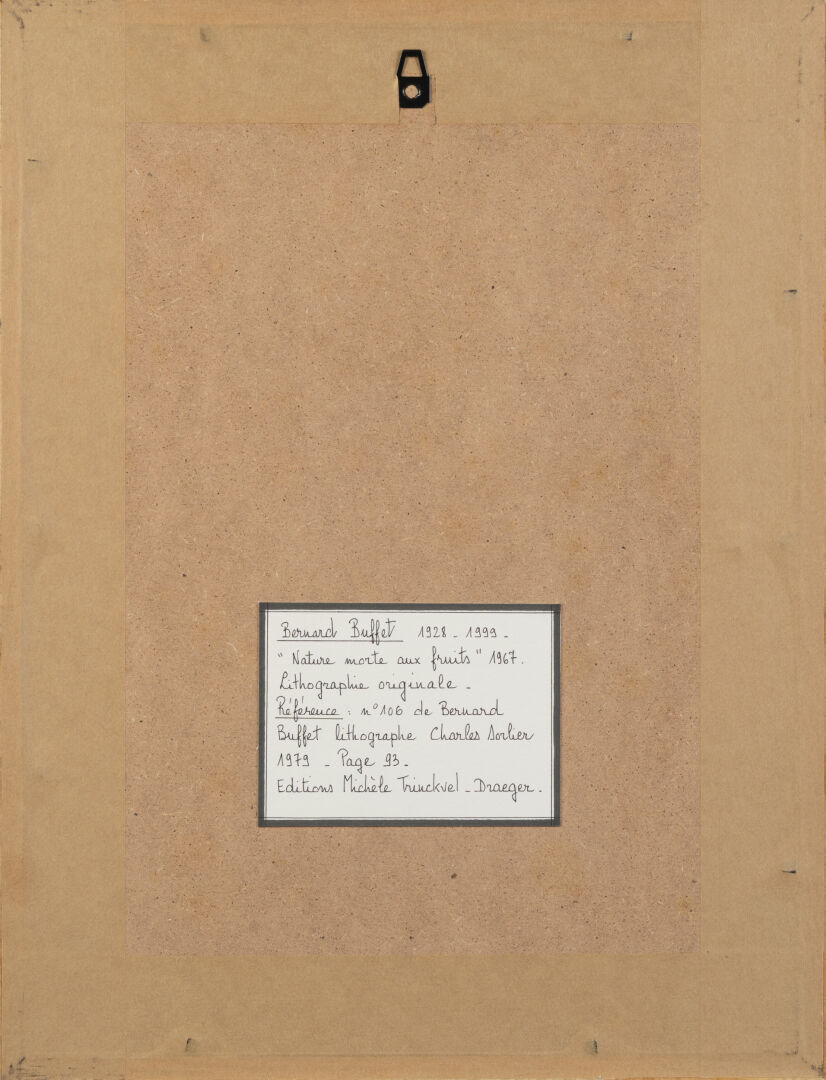 D'après Bernard BUFFET (1928-1999). "Nature morte au fruits". Lithographie sur papier. 30 x 23 cm à vue
