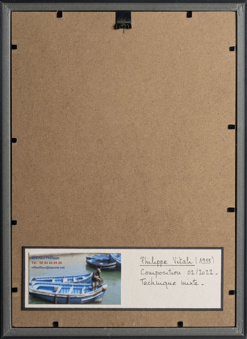 Philippe VITALI (1955). "Composition 02/2022" Technique mixte sur papier. 15 x 24 cm