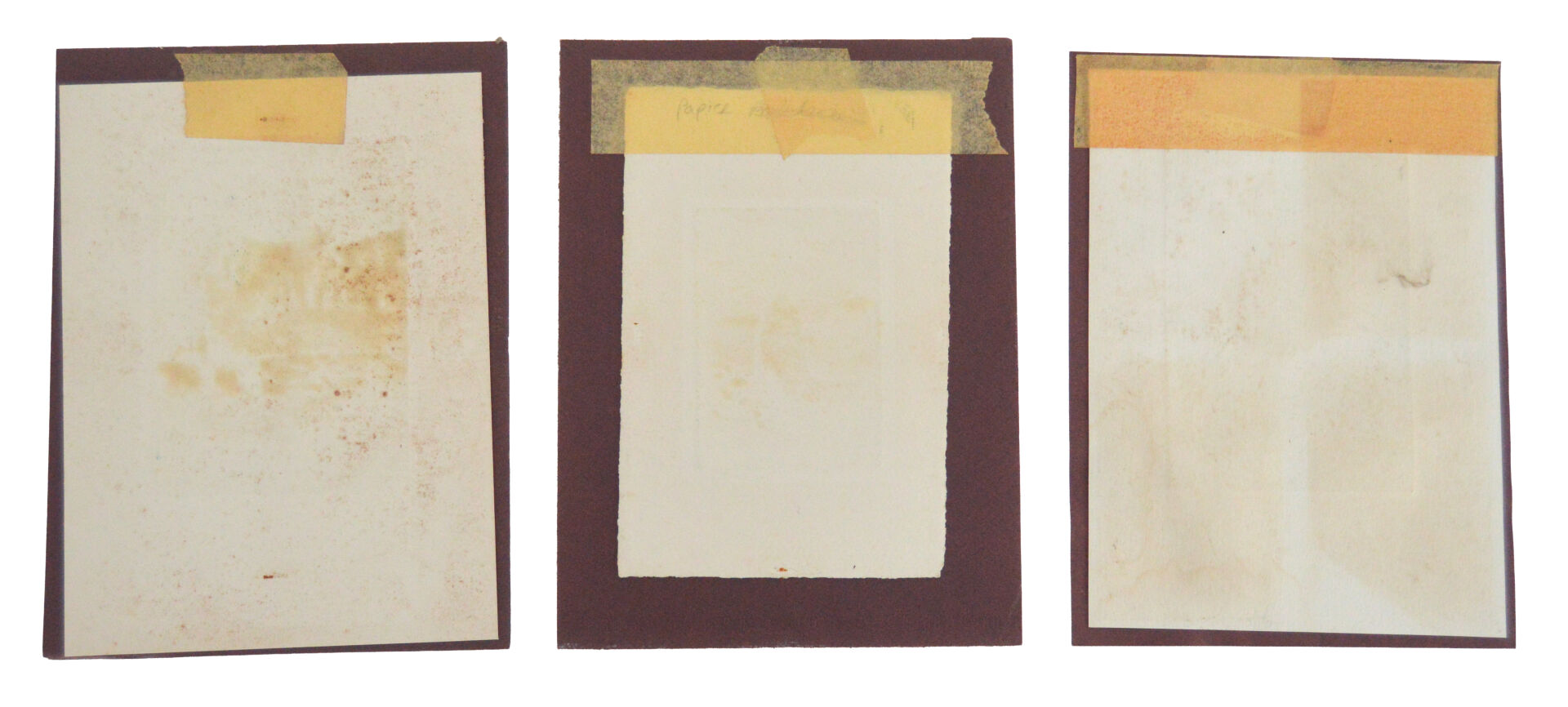 Reva REMY (1925). "Compositions". Suite de trois gravures sur papier. De droite à gauche et à vue : 15 x 10,5 cm ; 11 x 8,5 cm ; 19 x 10,5 cm