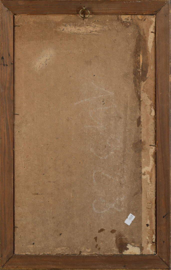 École du XIXème. "Les lavandières". Huile sur panneau. 34 cm x 53 cm