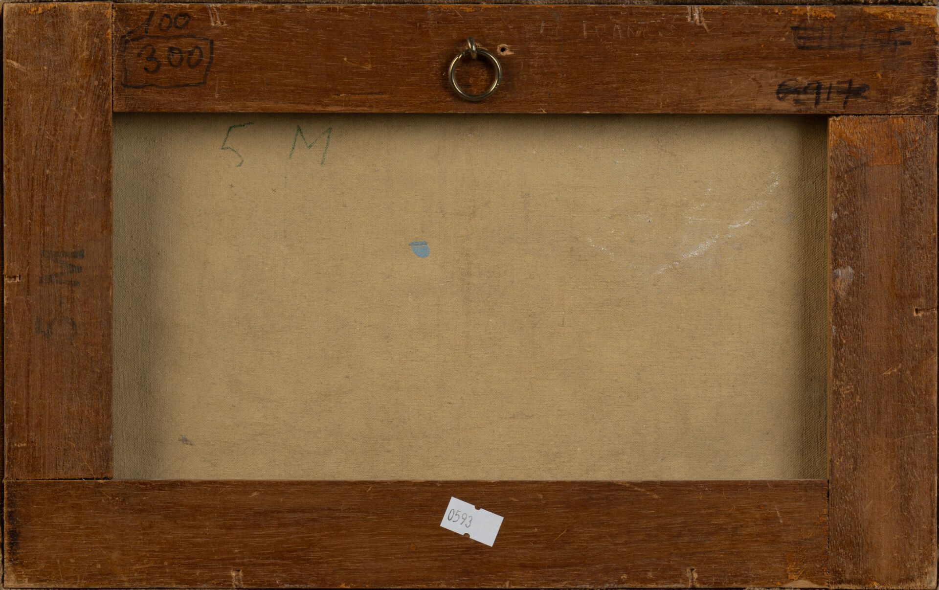 École du XXème. "Poséidon enlevant Amphitrite". Huile sur toile. 22 cm x 35 cm