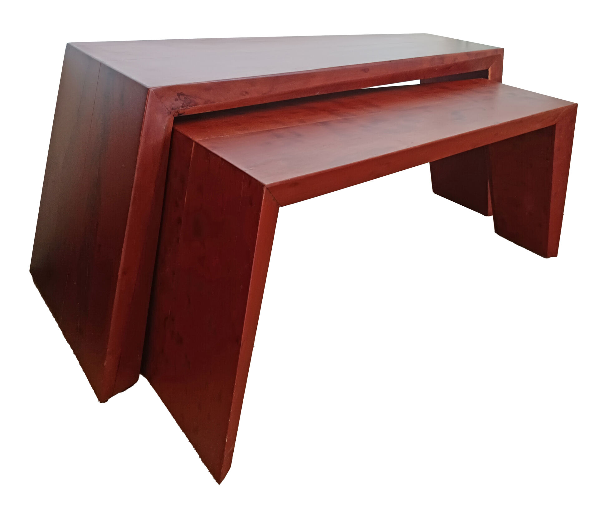 Michel BRIARD. Paire de tables gigognes en bois teinté. H : 33,5 cm ; L : 80 cm ; l : 31 cm H : 36,5 cm ; L : 91 cm ; l : 33 cm