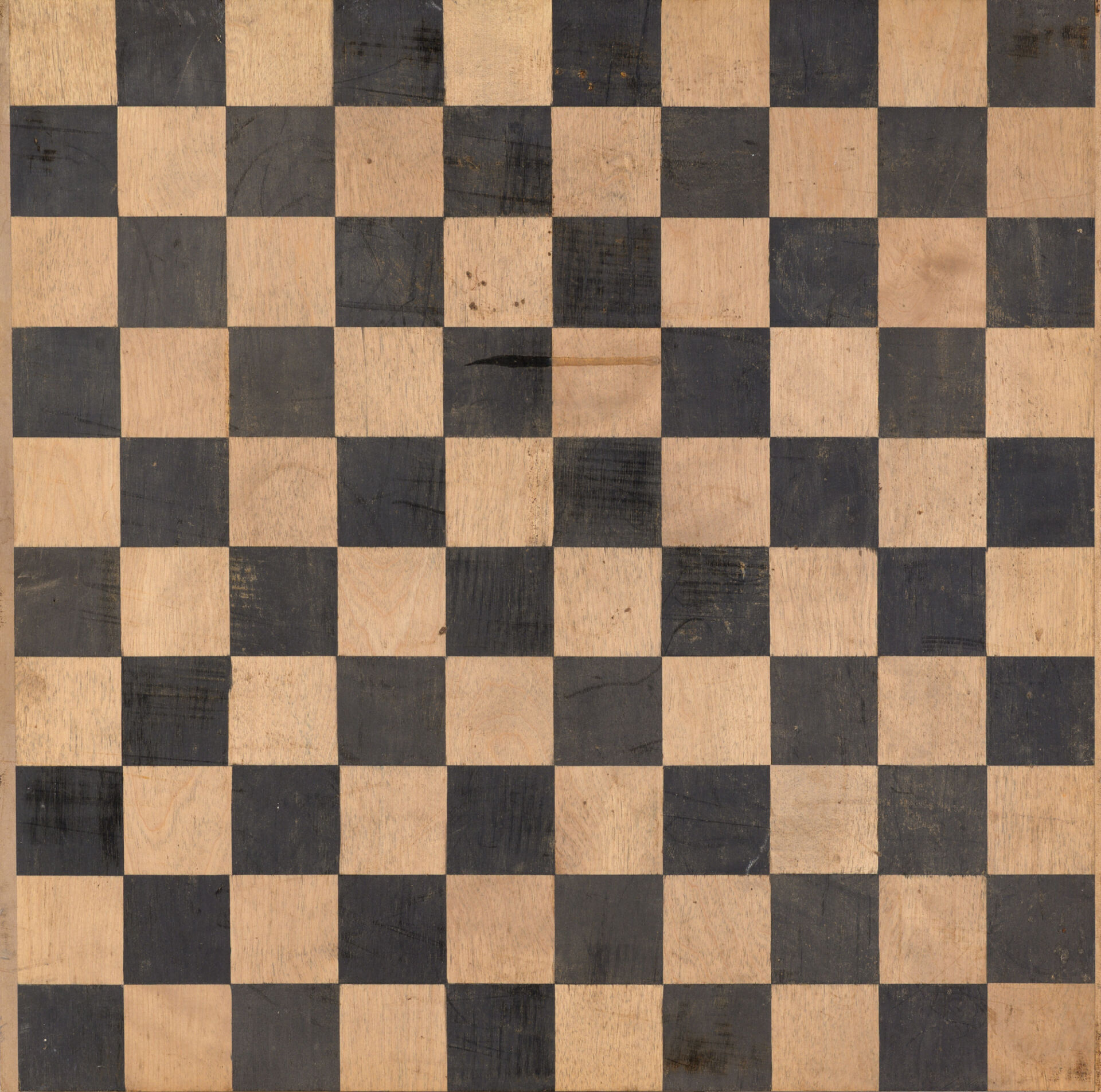 Michel BRIARD (1930-2025). Plateau de scrabble en bois de marqueterie. On y joint un plateau d'échiquier en bois peint. 38 x 38 cm