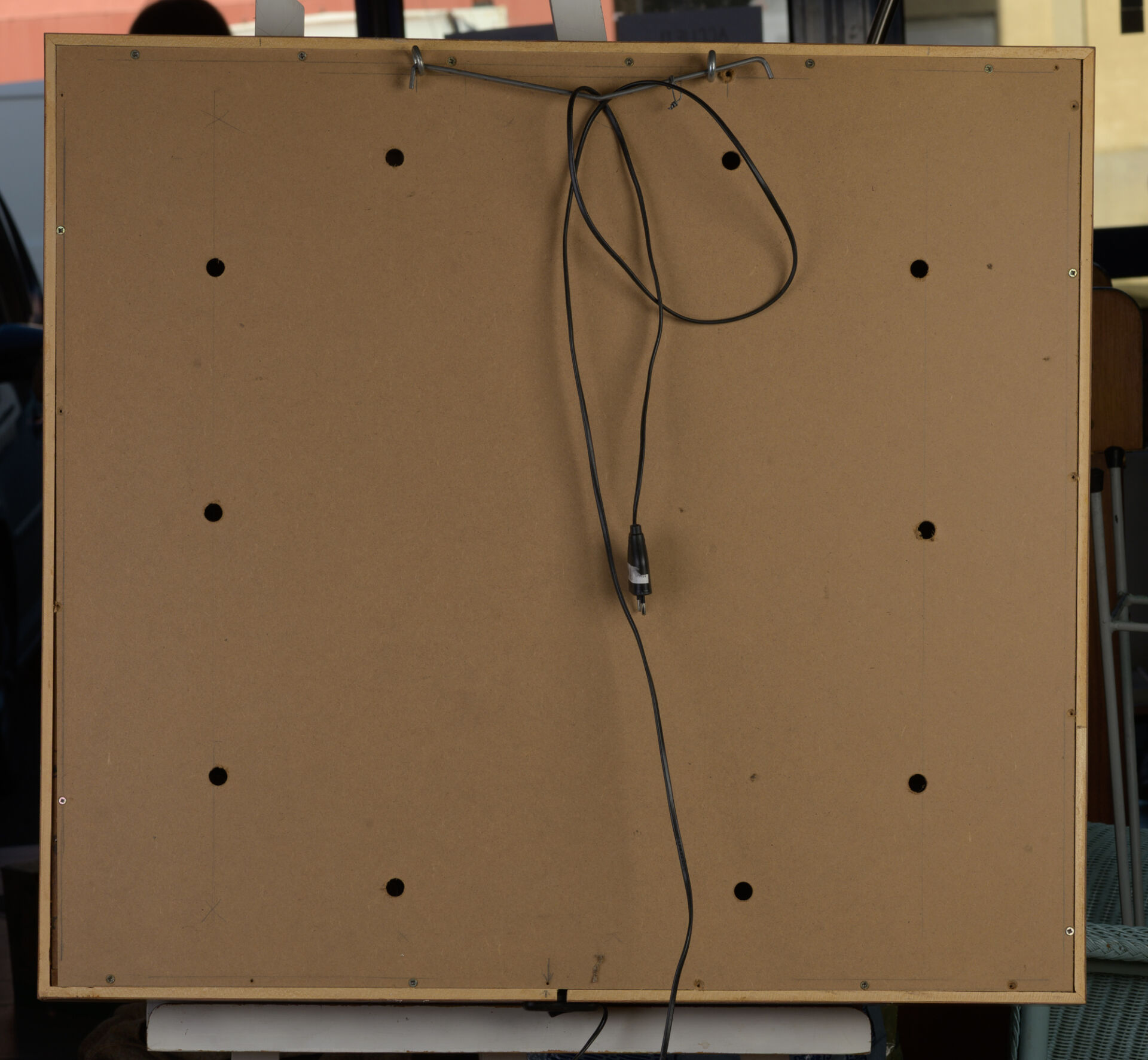 Michel BRIARD (1930-2025). "Le papillon". Tableau-lampe de marqueterie. 59 x 66 cm