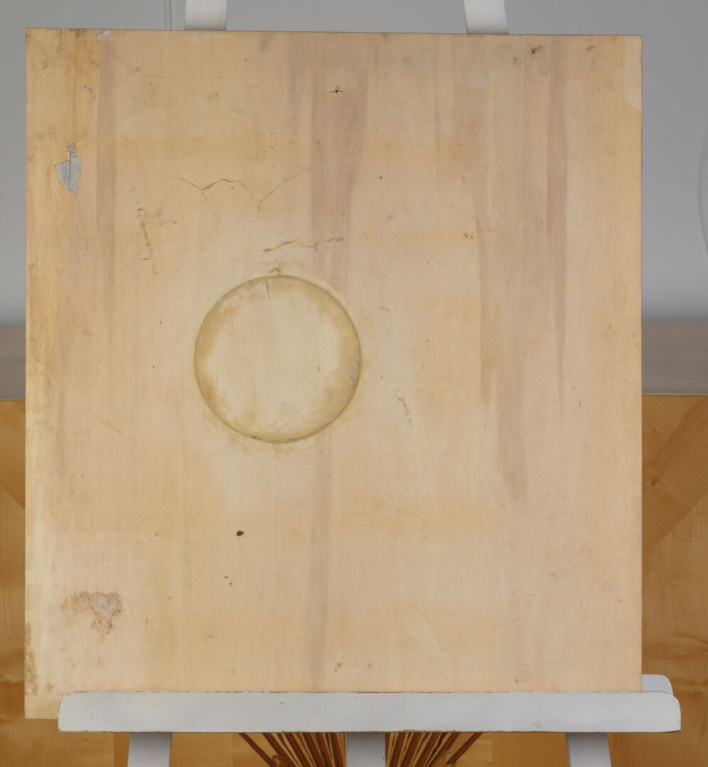 Michel BRIARD (1930-2025). "Composition abstraite aux mains et à l'oeil". Tableau de marqueterie. 65 x 58 cm
