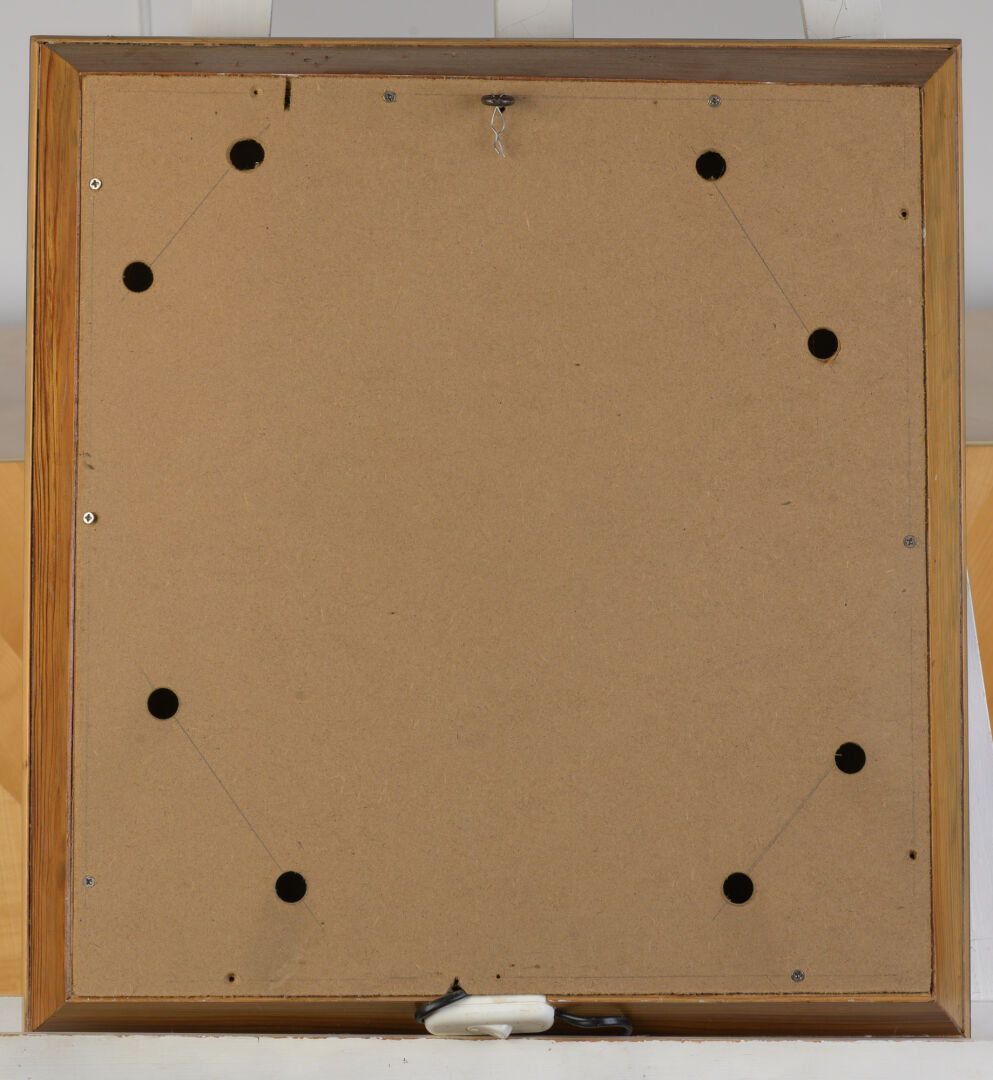 Michel BRIARD (1930-2025). "Composition au coeur". Tableau - lampe de marqueterie avec le coeur s'éclairant. 50 x 45 cm