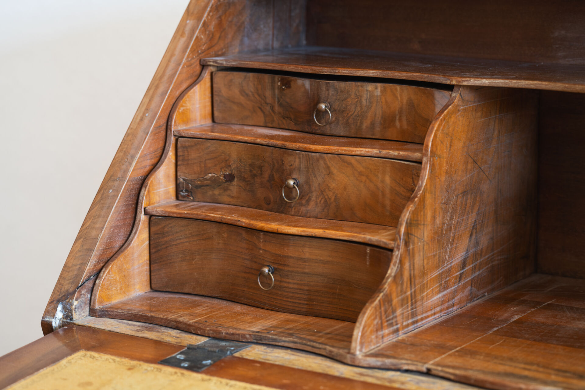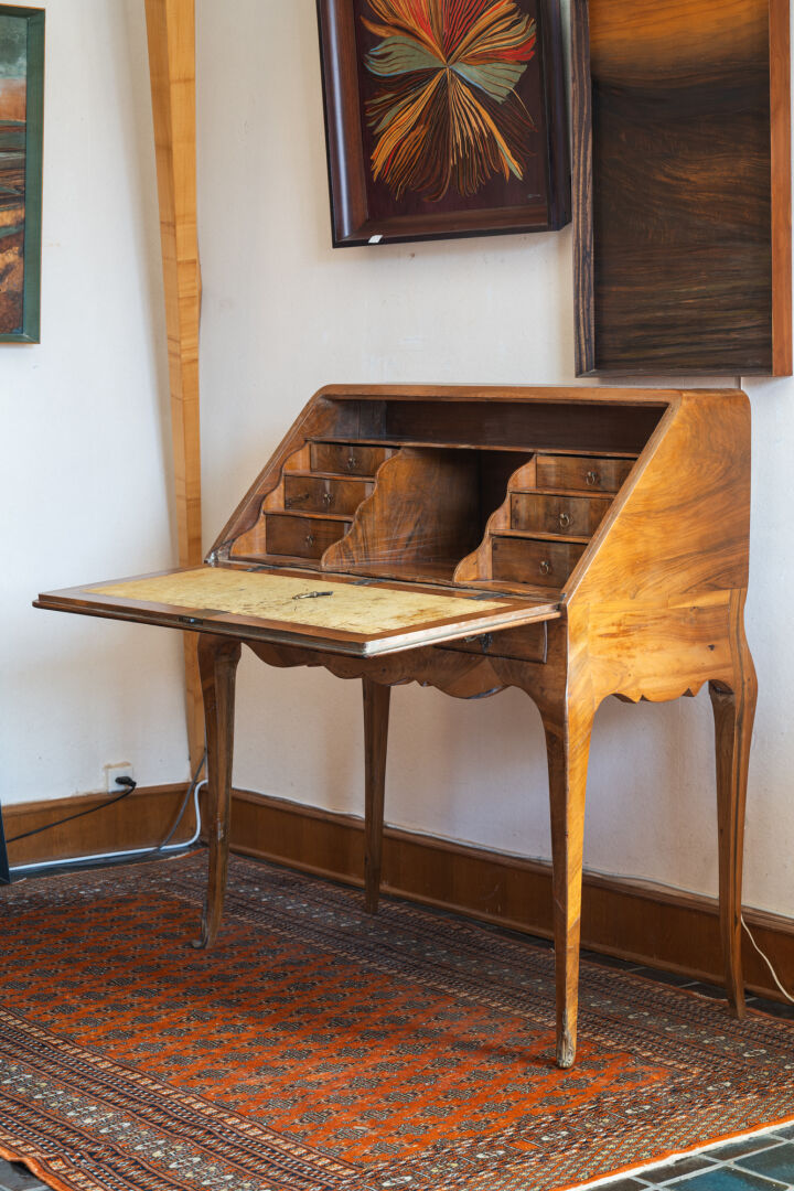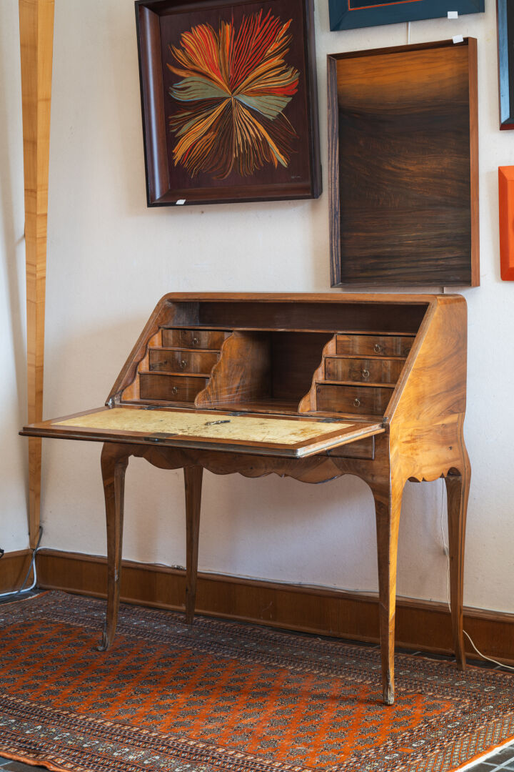 Atelier Michel BRIARD. Bureau de pente en bois et bois de placage. Style Louis XV. H : 100 cm ; L : 89 cm ; l : 42 cm