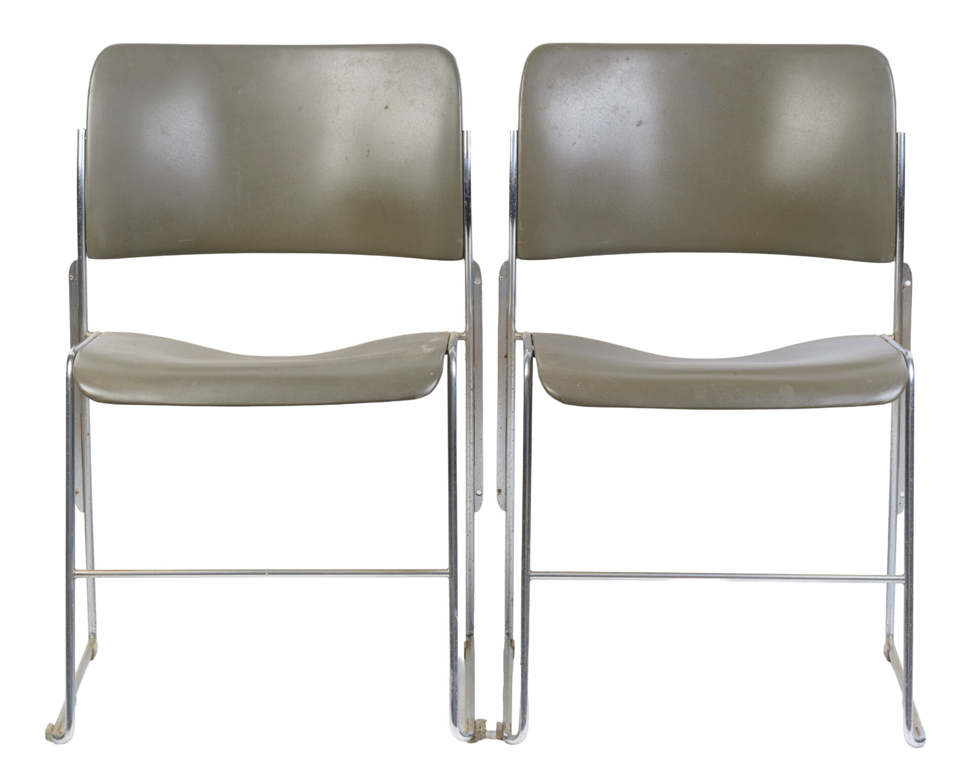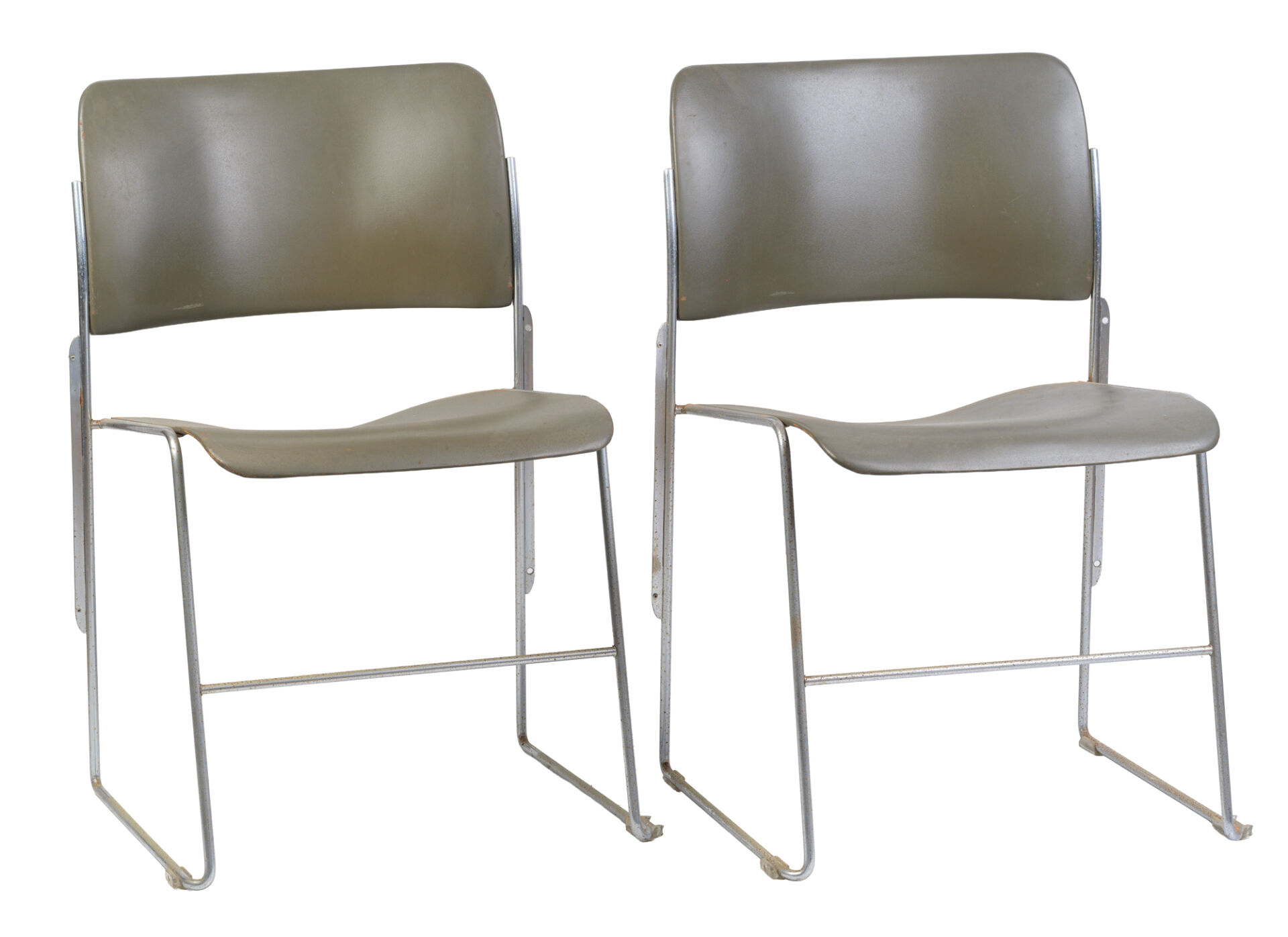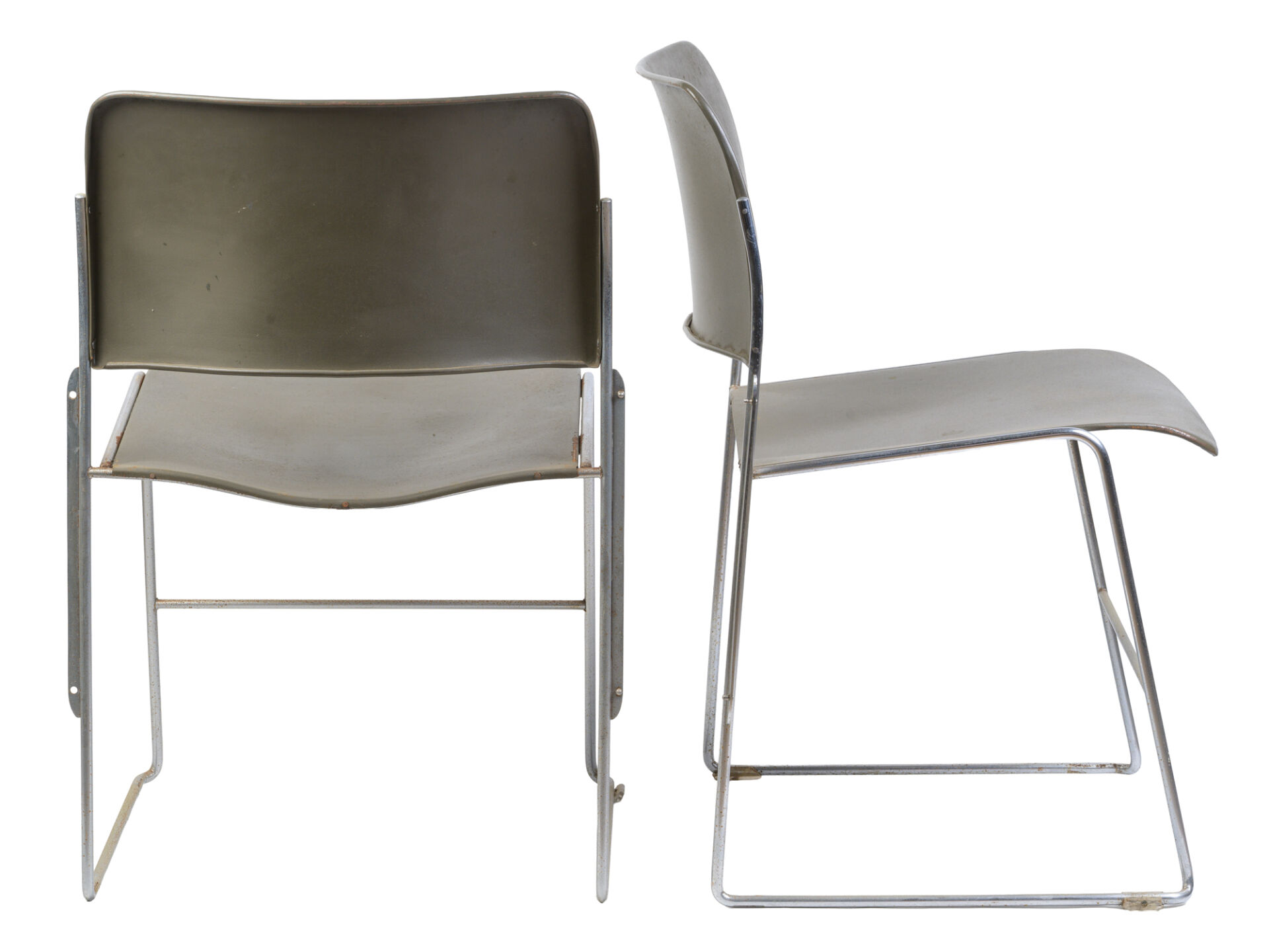 David ROWLAND (1924-2010). Suite de six chaises modèle "40/4 chair" en plastique et métal chromé. H : 77 cm ; L : 53 cm ; l : 51 cm