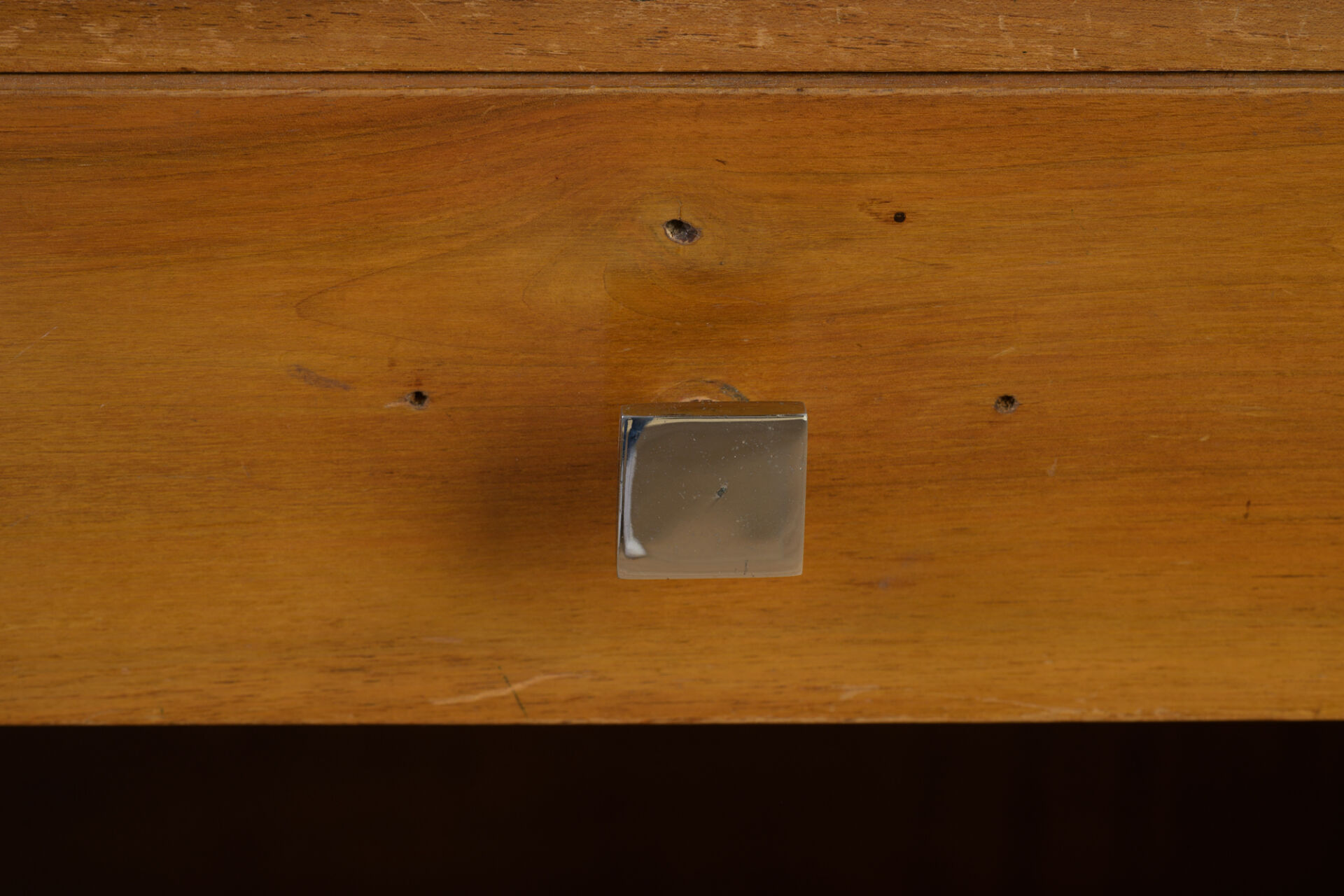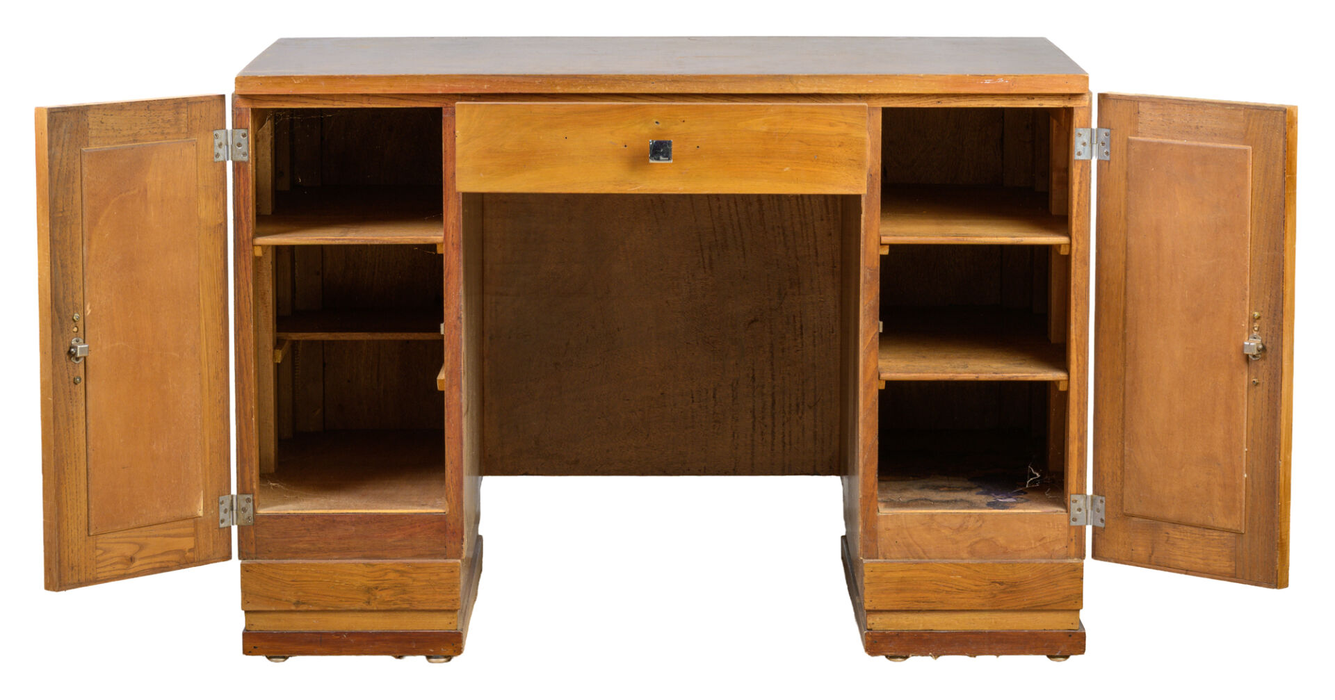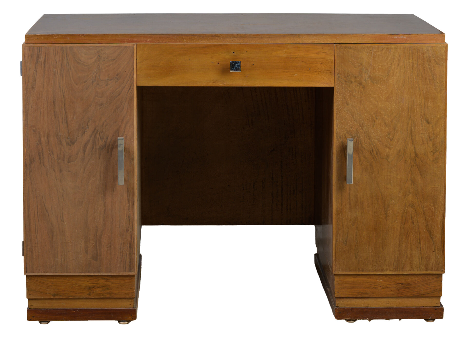 Dans le goût de René HERBST (1891-1982). Bureau moderniste en bois ouvrant à un tiroir en ceinture et deux vantaux. Vers 1930-1940. Plateau accidenté. H : 77 cm ; L :110 cm ; l : 69 cm