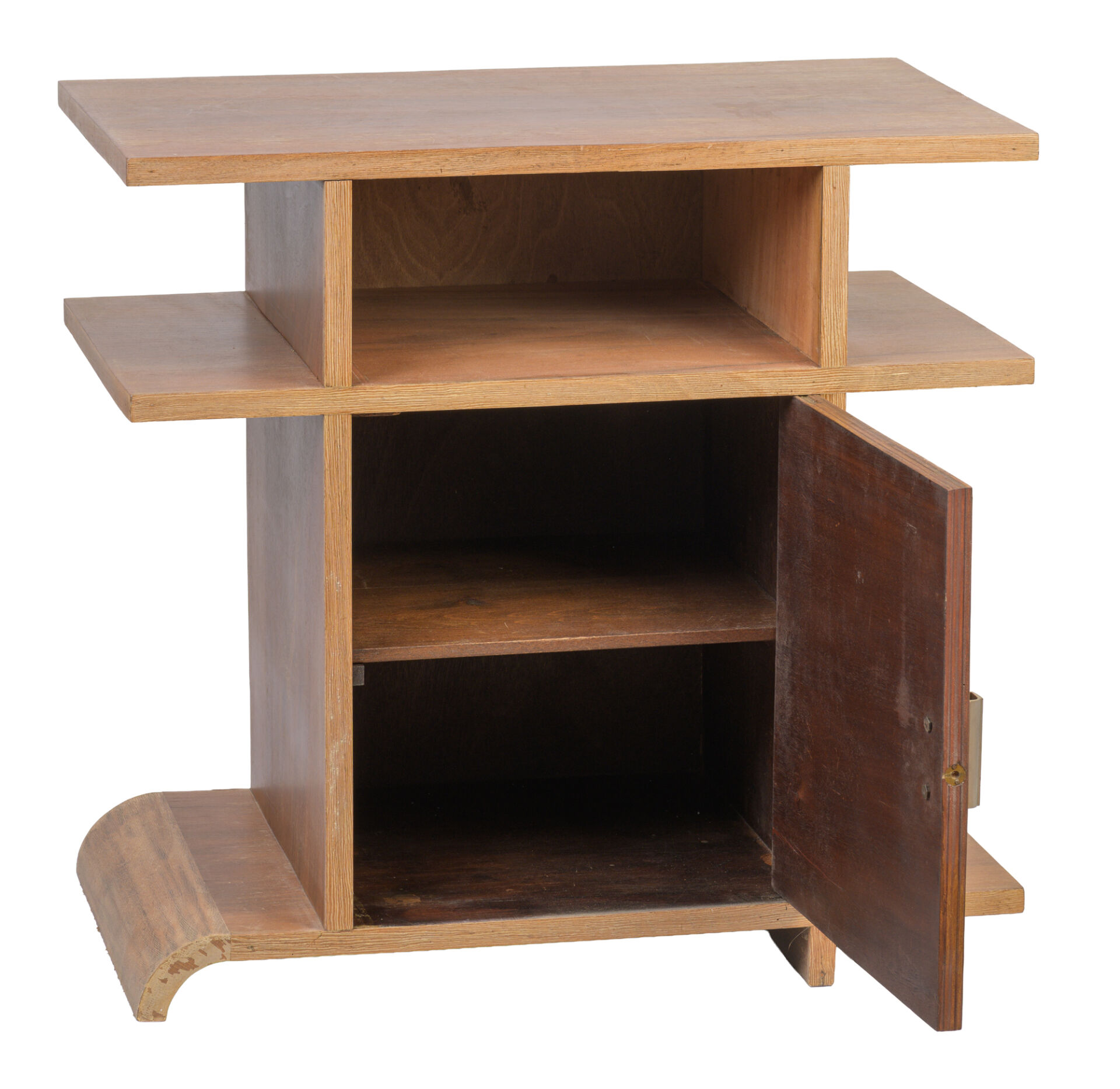 Chevet moderniste en bois ouvrant à un vantail. Vers 1930-1940. Accident au piètement. H : 67 cm ; L : 70 cm ; l : 40 cm